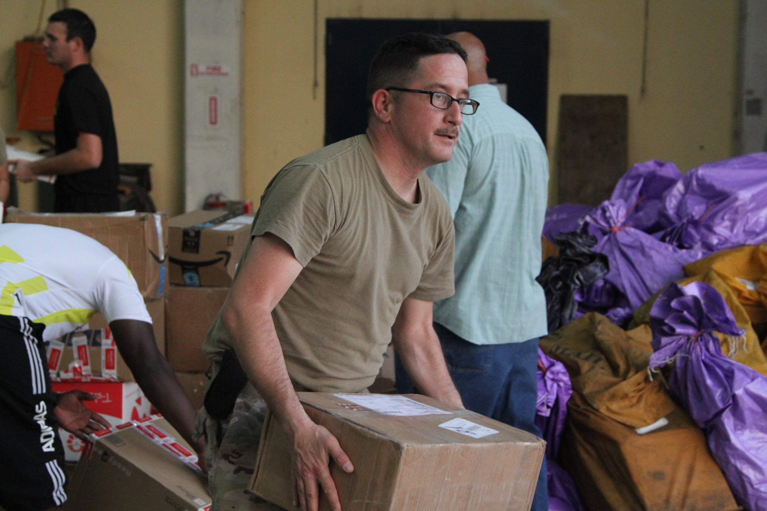 GAROUA, Cameroon – More than 20 official unit mail handlers worked diligently to process hundreds of packages the evening of December 19 and 20 for the service members stationed here.