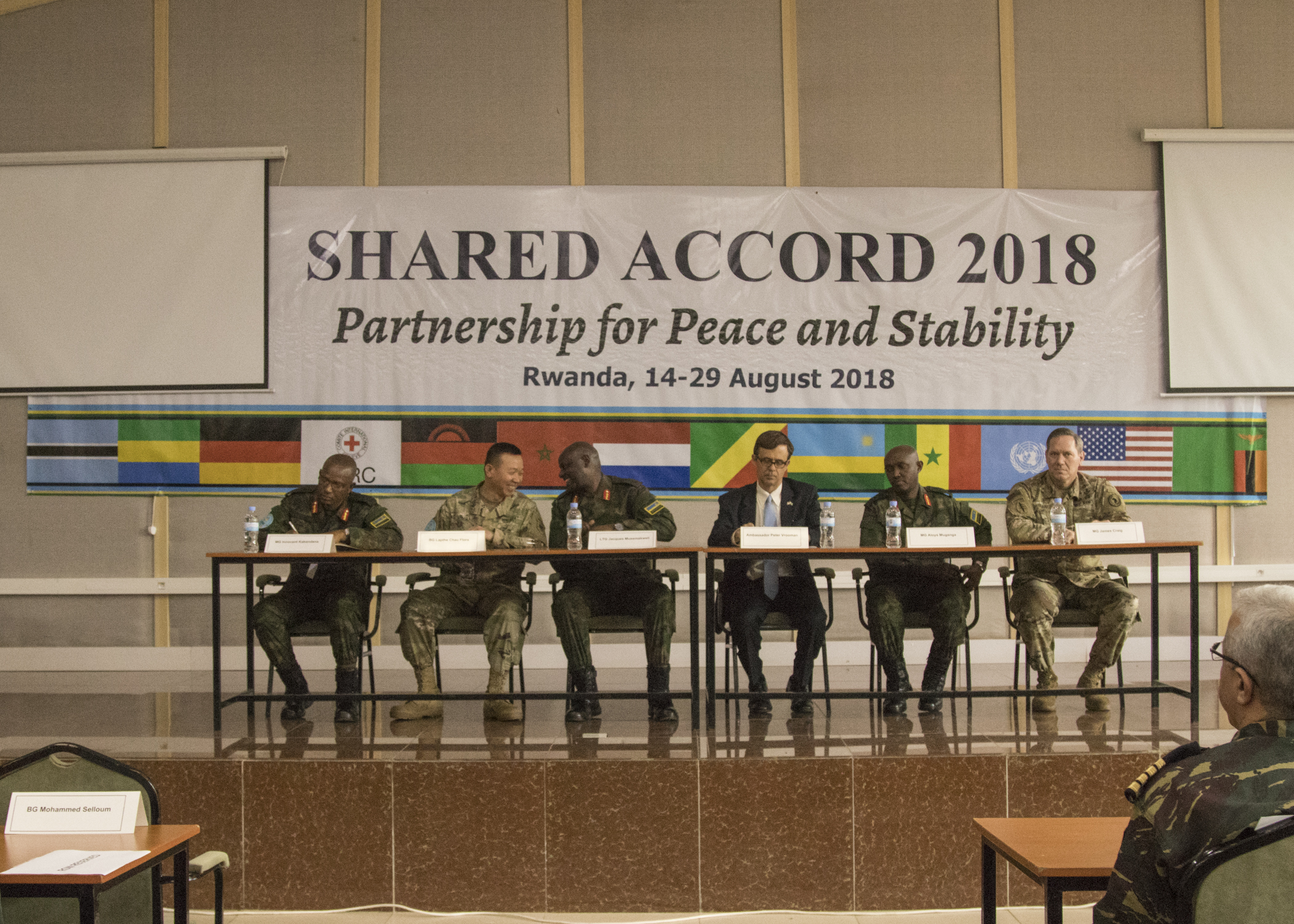 “This exercise will enrich your capacity to plan, implement and evaluate your future tasks as protectors of civilians in peace support operations,” said Rwanda Defence Force Maj. Gen. Innocent Kabandana, a Shared Accord exercise co-director. “Thus, the collective planning and preparation of such an exercise has been fruitful since the interoperability and cooperation thereby sought are crucial to achieve the desired success in peace operations.”