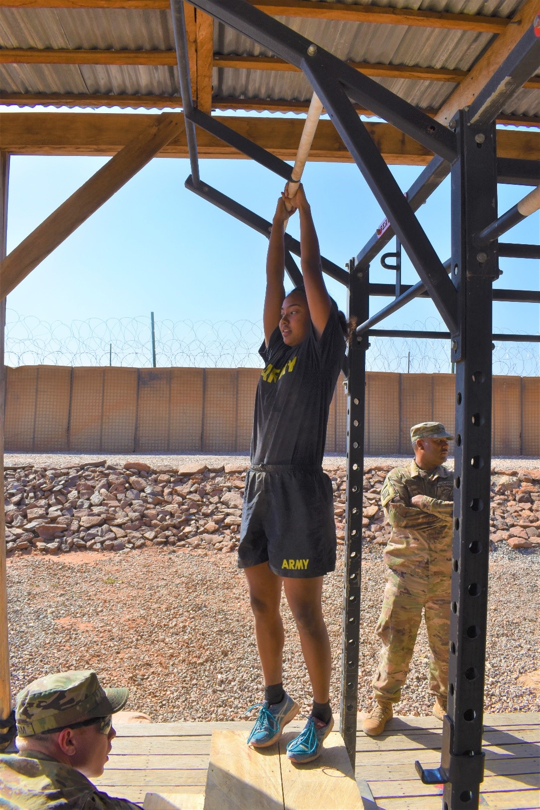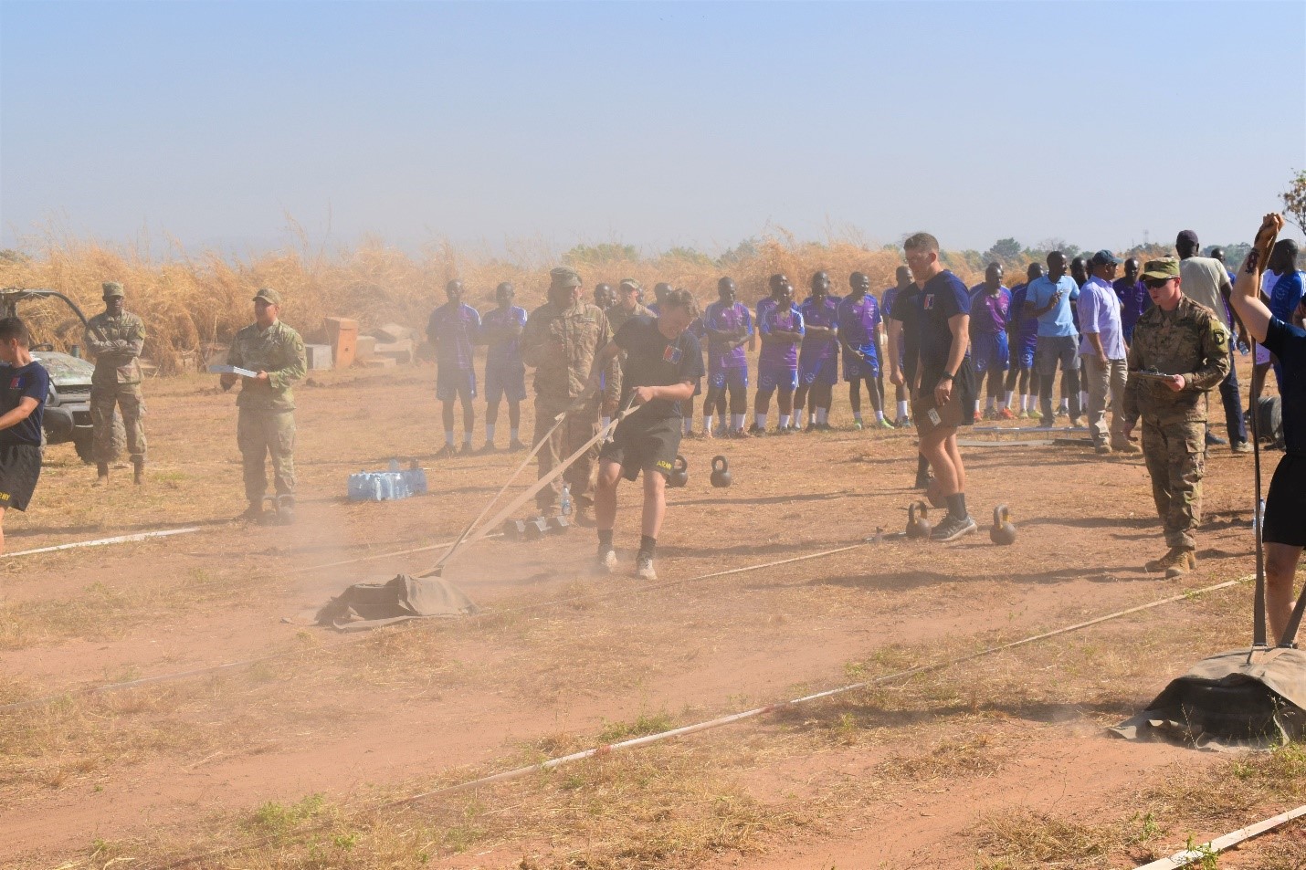 In addition to time and equipment limitations, the winter climate also presented training issues. In the months leading up to the testing weeks, Cameroon experienced consistently high temperatures without precipitation, causing dust clouds to form during the sprint, drag, carry and hand release pushup events, impeding Soldiers’ performances.
