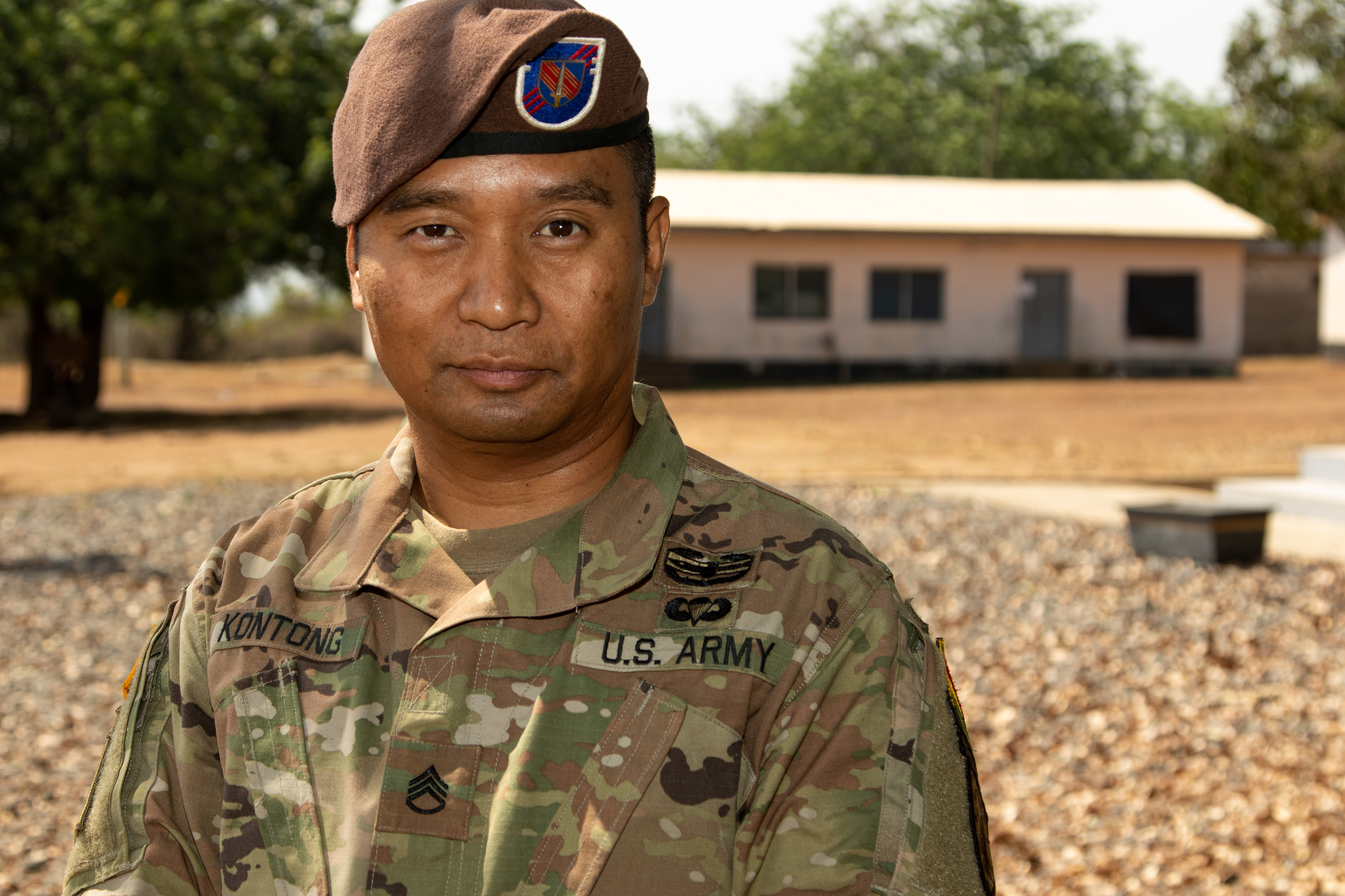 Staff Sgt. William Kontong, assigned to the 2nd Security Assistance Forces Brigade out of Ft. Bragg, N.C., made the decision to serve in the U.S. Army as a way to serve others and represent his country.