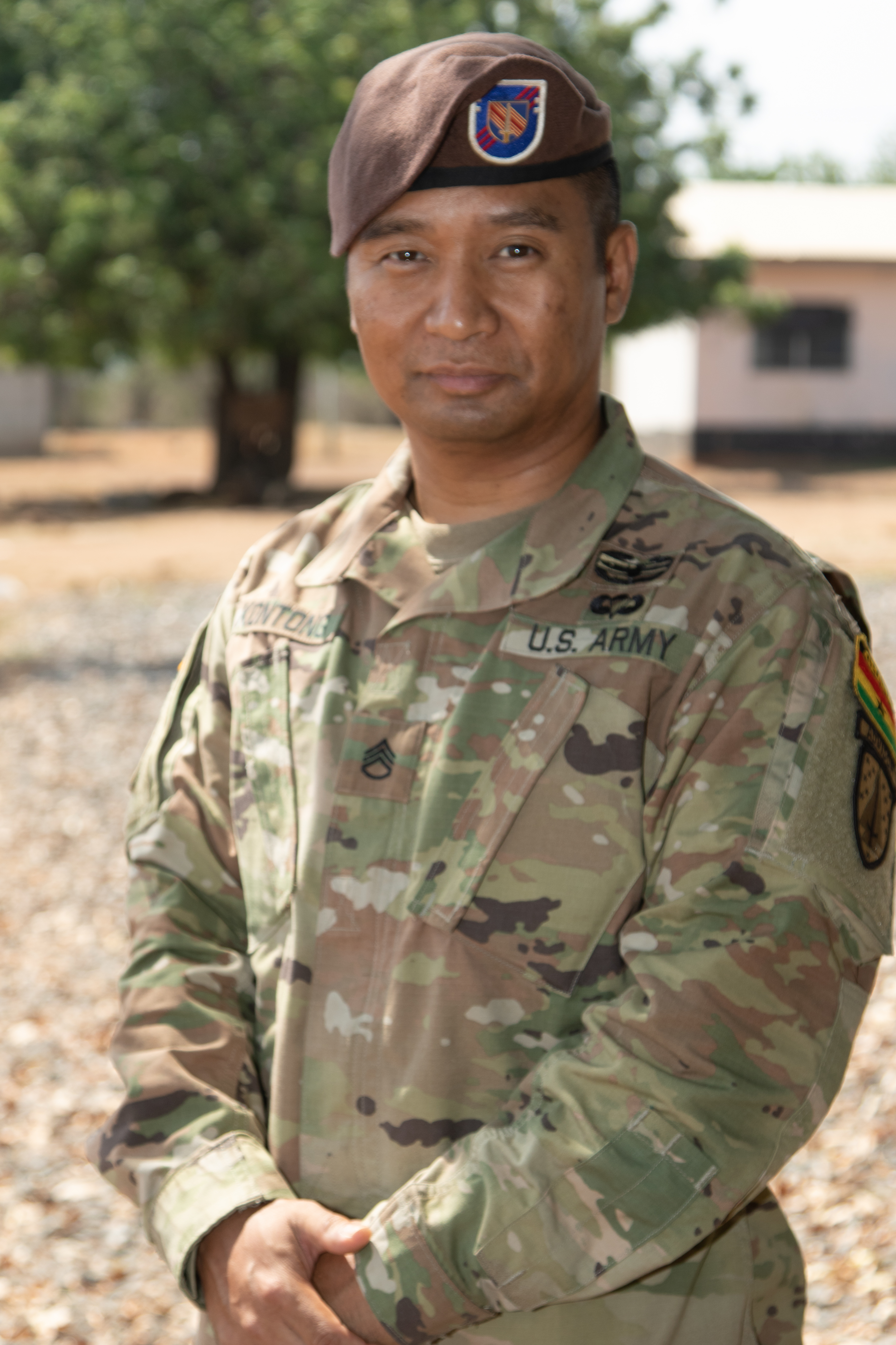 BUNDASE, Ghana – Soldiers make the decision to serve in the military for a variety of reasons. For one noncommissioned officer out of Ft. Bragg, N.C., a decision to join the military over 10 years ago has brought about opportunities to achieve a personal goal and passion to help others.
