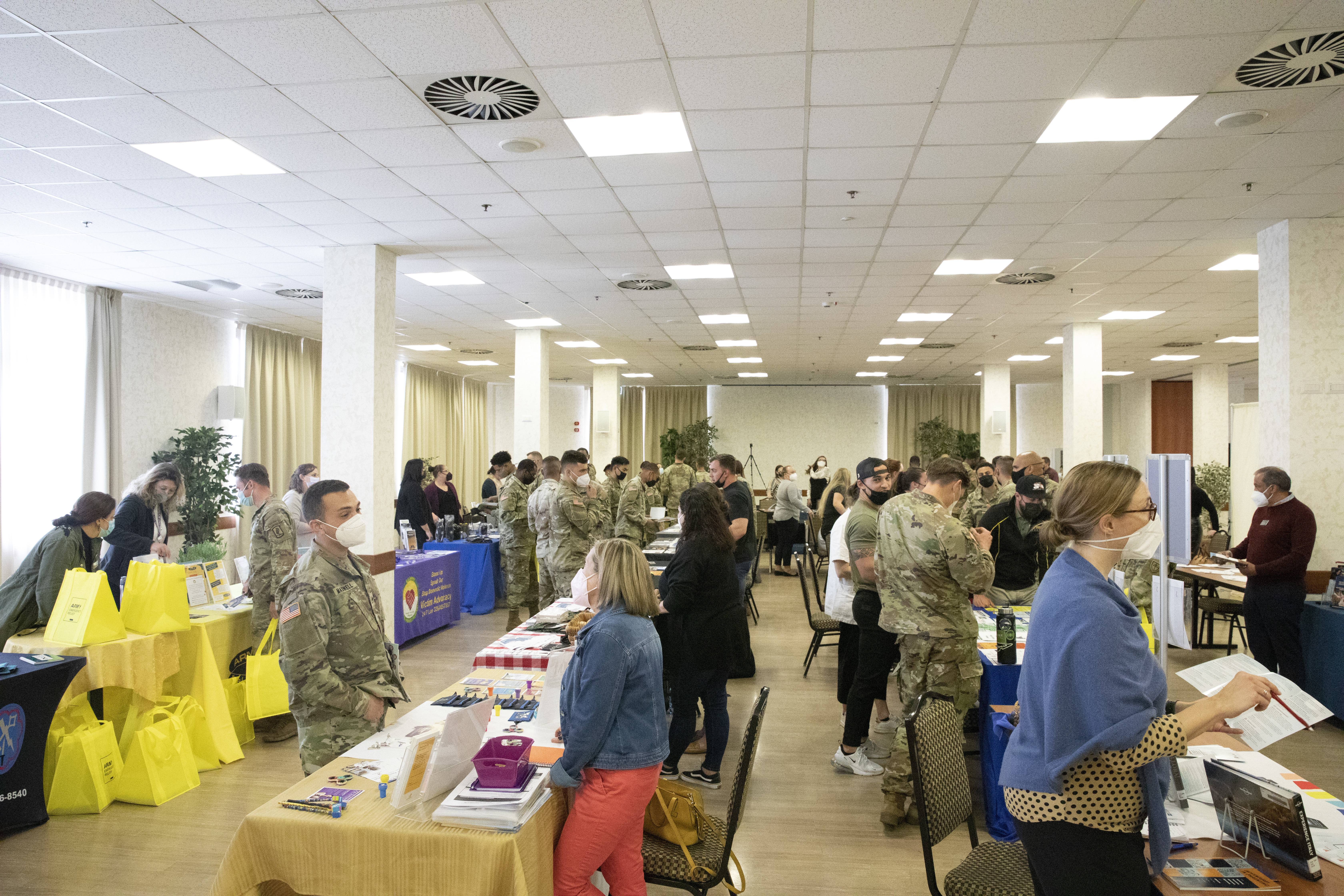 Attendees of the Squad Leader Summit visit the industry booths to learn more about resources they can help provide to their soldiers during the Squad Leader Summit on Caserma Ederle in Vicenza, Italy, April 19, 2022. The purpose of the Summit was to teach current and soon-to-be squad leaders about building effective and cohesive teams that are trained, disciplined, and fit.