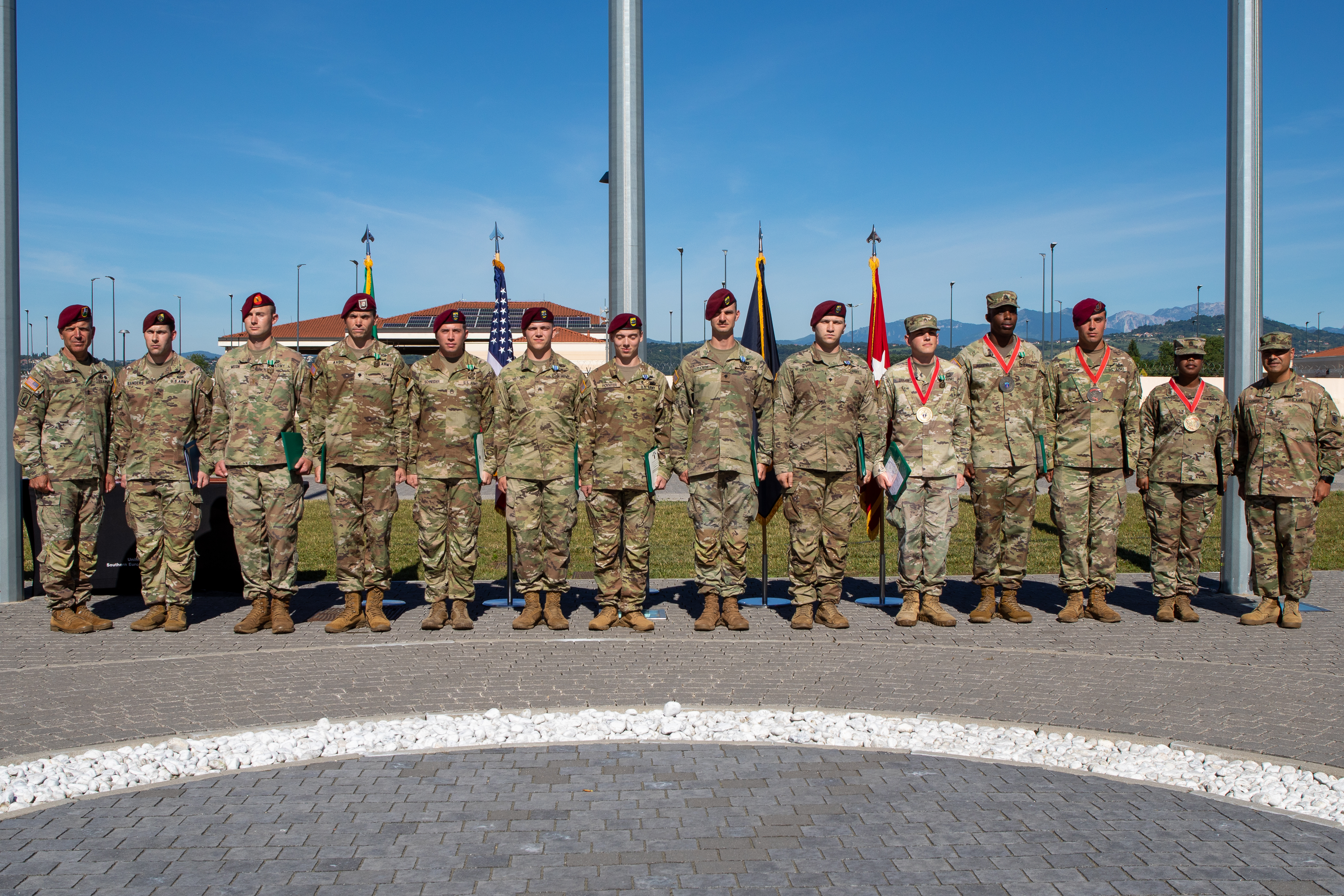 Additionally, Sgt. Joshua Stolz, assigned to the 1st Battalion, 503rd Infantry Regiment, 173rd Airborne Brigade earned the title “Iron Soldier” for the best ACFT score; Sgt. Joseph Sanders, assigned to the 173rd Brigade Support Battalion, 173rd Airborne Brigade earned the title “Top Shot” with the best score on the stress shoot event; and Spc. Tyler Graessle, assigned to the 601st Quartermaster Company, 173rd Brigade Support Battalion, 173rd Airborne Brigade, earned the title “Golden Pen” for his essay.