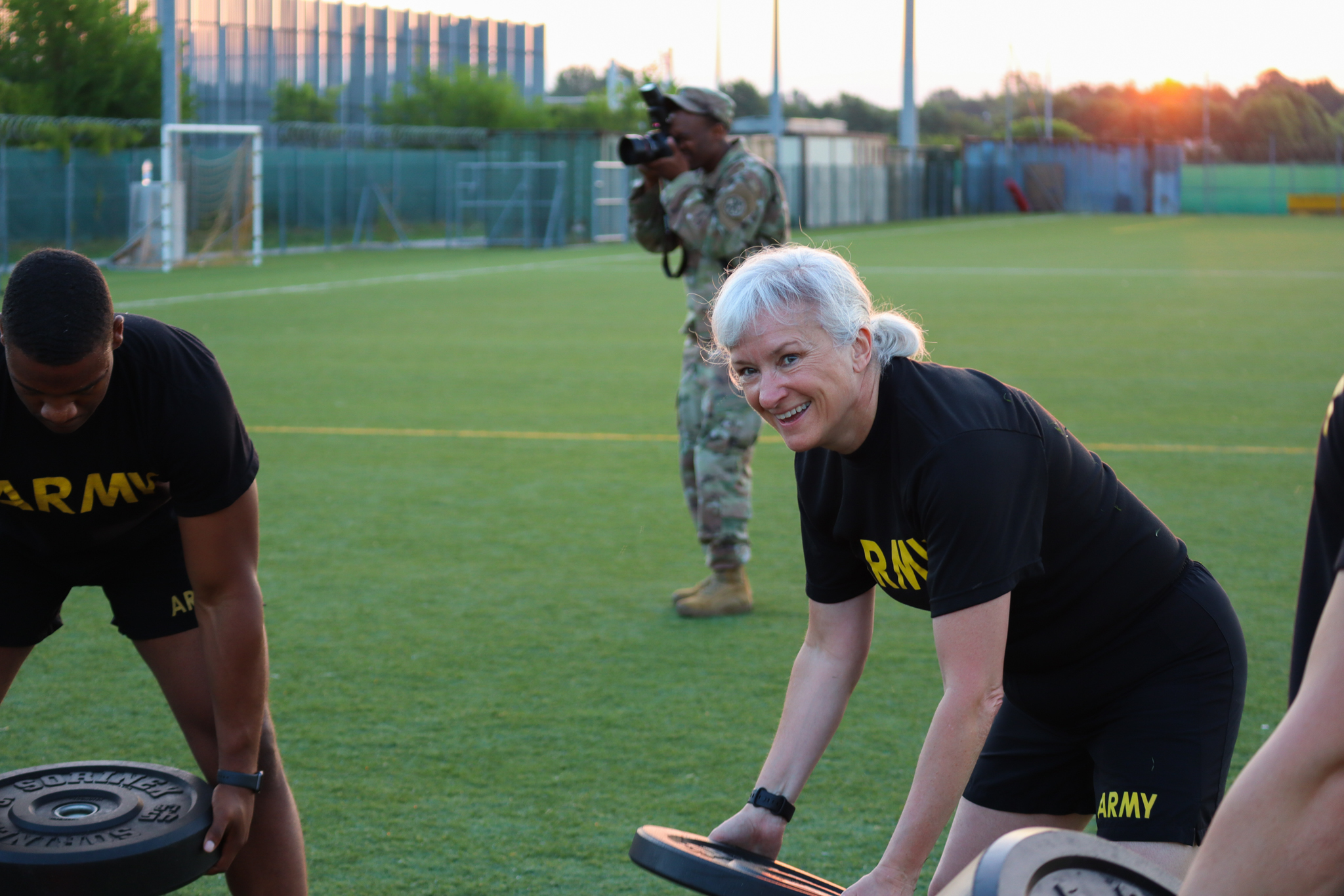 During her visit, Potter made time to connect with military intelligence Soldiers about the importance of their roles in the Army. It began at sunrise, as Potter worked out with 207th Soldiers conducting drills that improve Army Combat Fitness Test (ACFT) scores. She chatted with them during the routines and then called them around for an informal huddle.