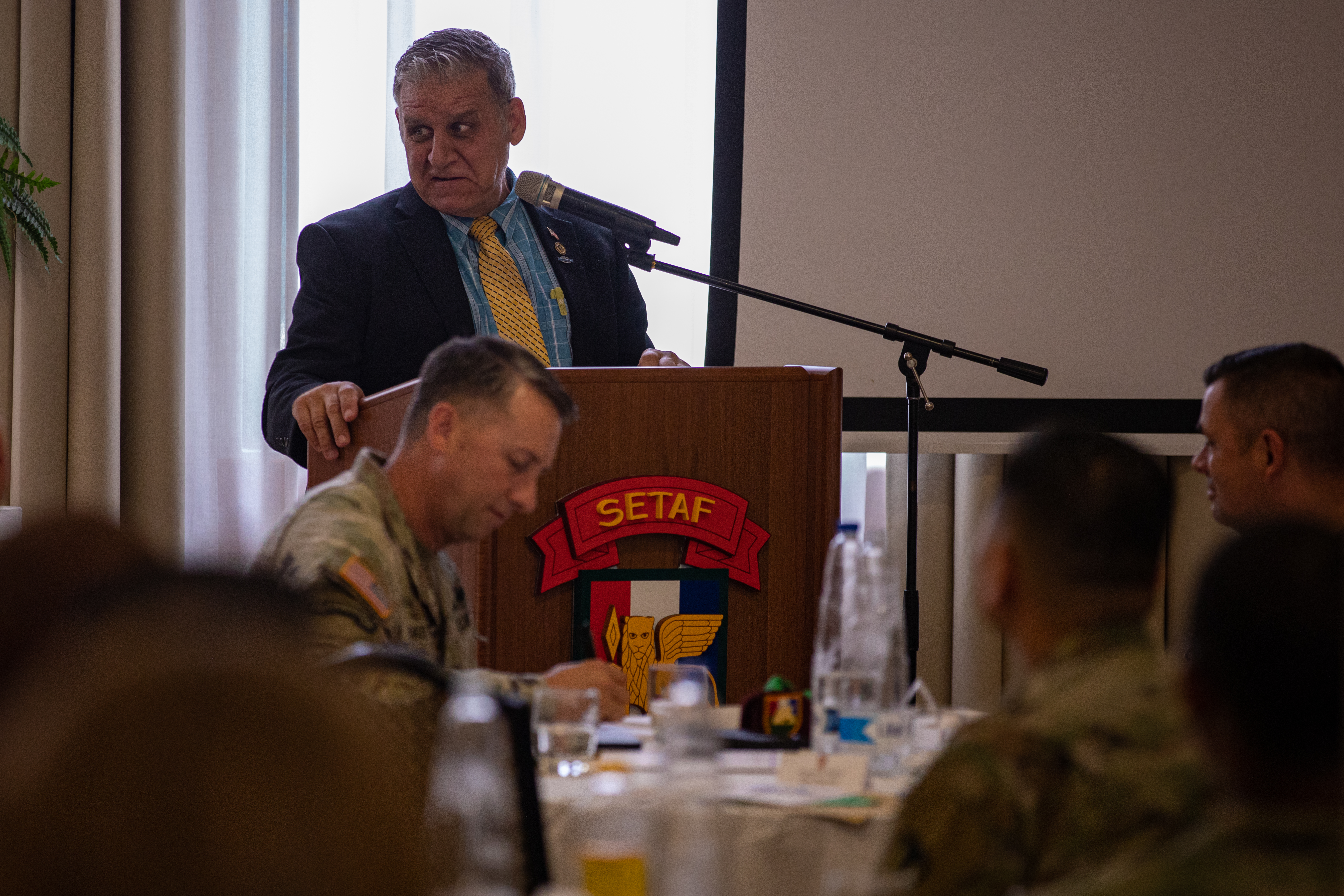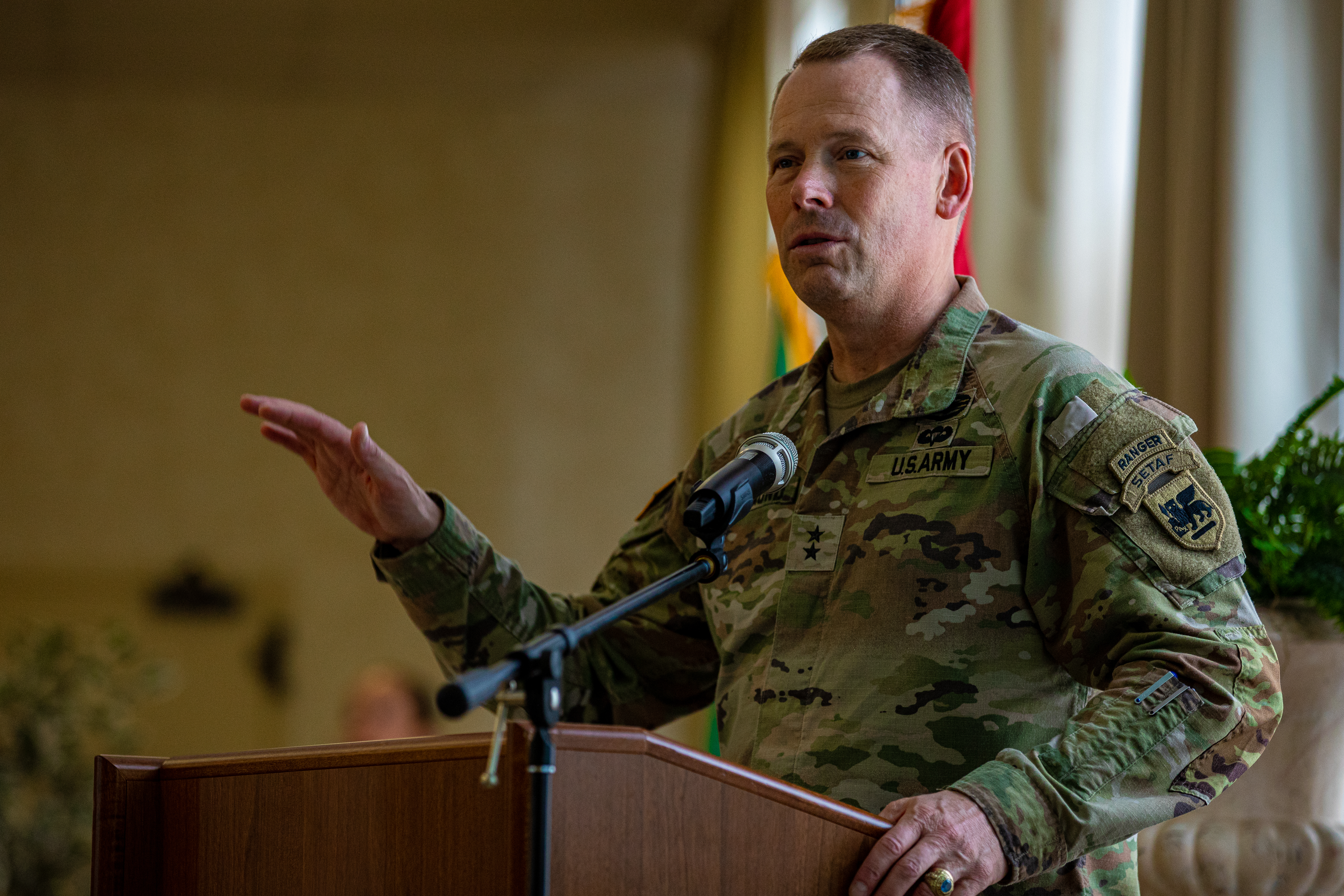 At the culminating luncheon, Maj. Gen. Todd Wasmund, commanding general of SETAF-AF, spoke to participants about what Army heritage means.