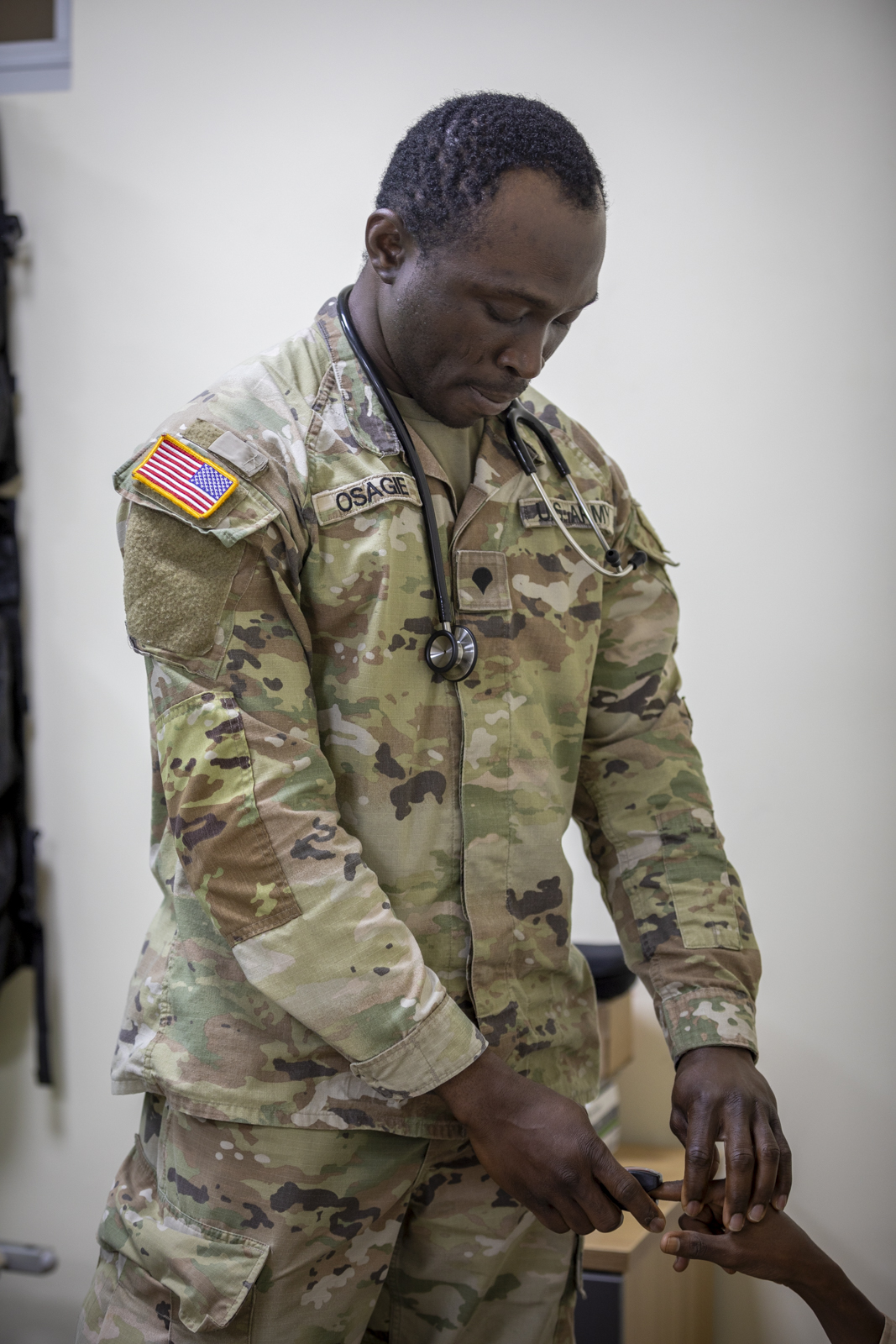 NANYUKI, Kenya – "I'm here to give back to my continent," said U.S. Army Spc. Israel Osagie, a practical nursing specialist with the 425th Medical Detachment, 176th Medical Brigade, 807th Medical Command.