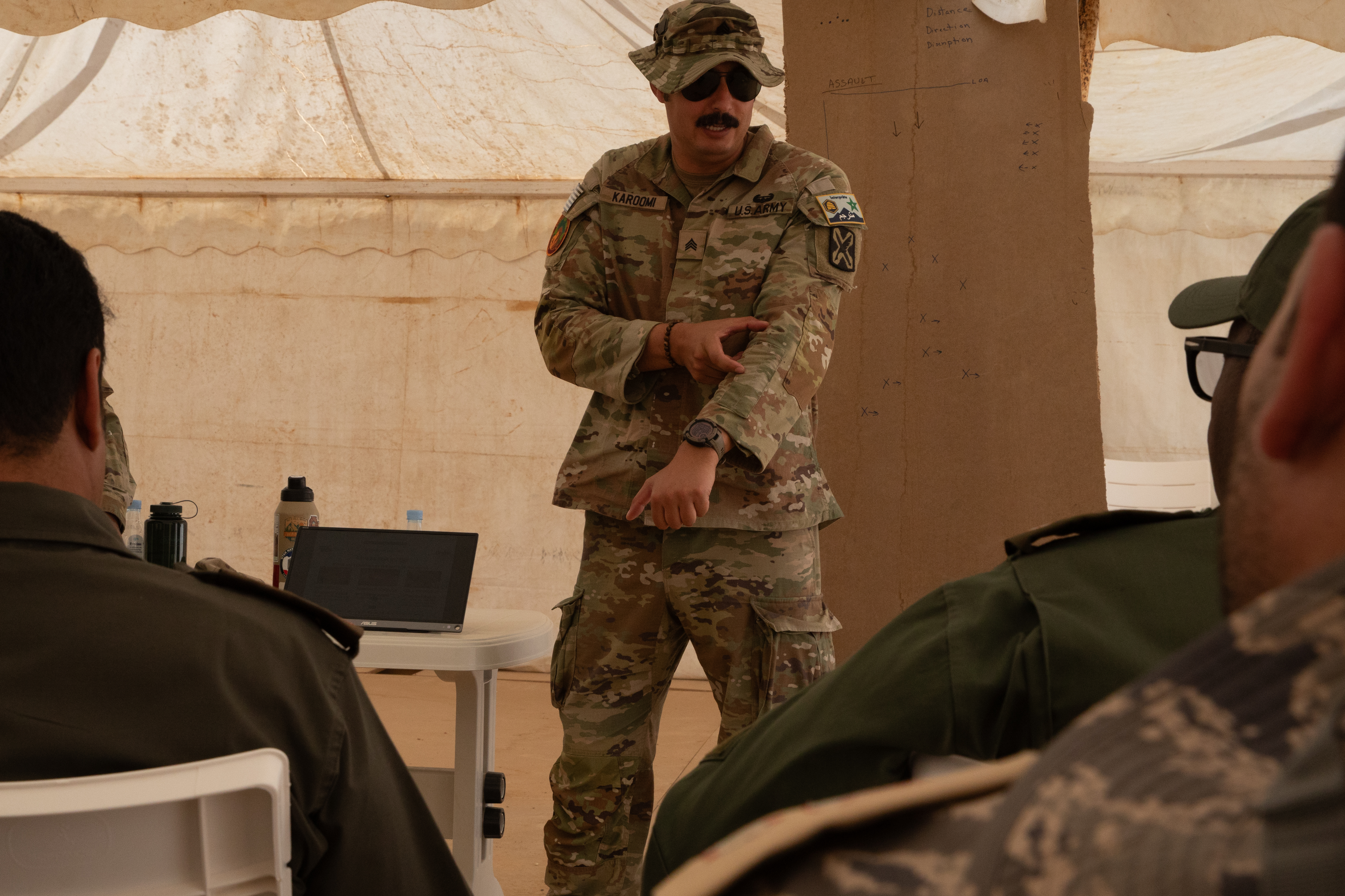 Throughout AL24, Karoomi has been involved in a variety of events, from interpreting customs instructions to discussing infantry tactics and medical techniques with military members from African nations.