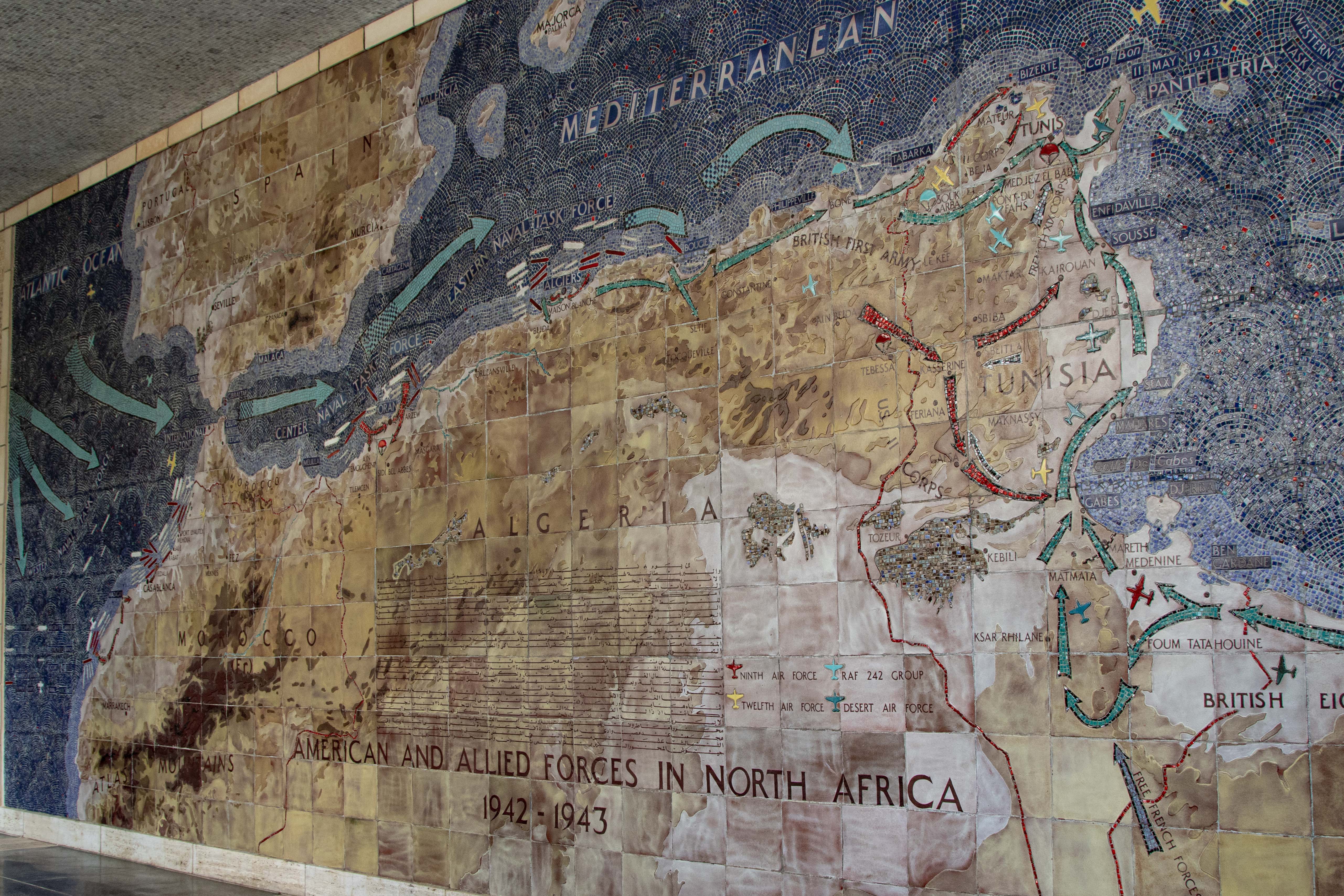 A mosaic map illustrates the movement of Allied forces across Northern Africa during World War II at the North Africa American Cemetery and Memorial in Carthage, Tunisia, May 7, 2024. The cemetery is the final resting place for over 2,800 U.S. service members. African Lion 2024 marks the 20th anniversary of U.S. Africa Command’s premier joint exercise led by U.S. Army Southern European Task Force, Africa (SETAF-AF), running from April 19 to May 31 across Ghana, Morocco, Senegal, and Tunisia, with over 8,100 participants from 27 nations and NATO contingents. (U.S. Army photo by Maj. Joe Legros)