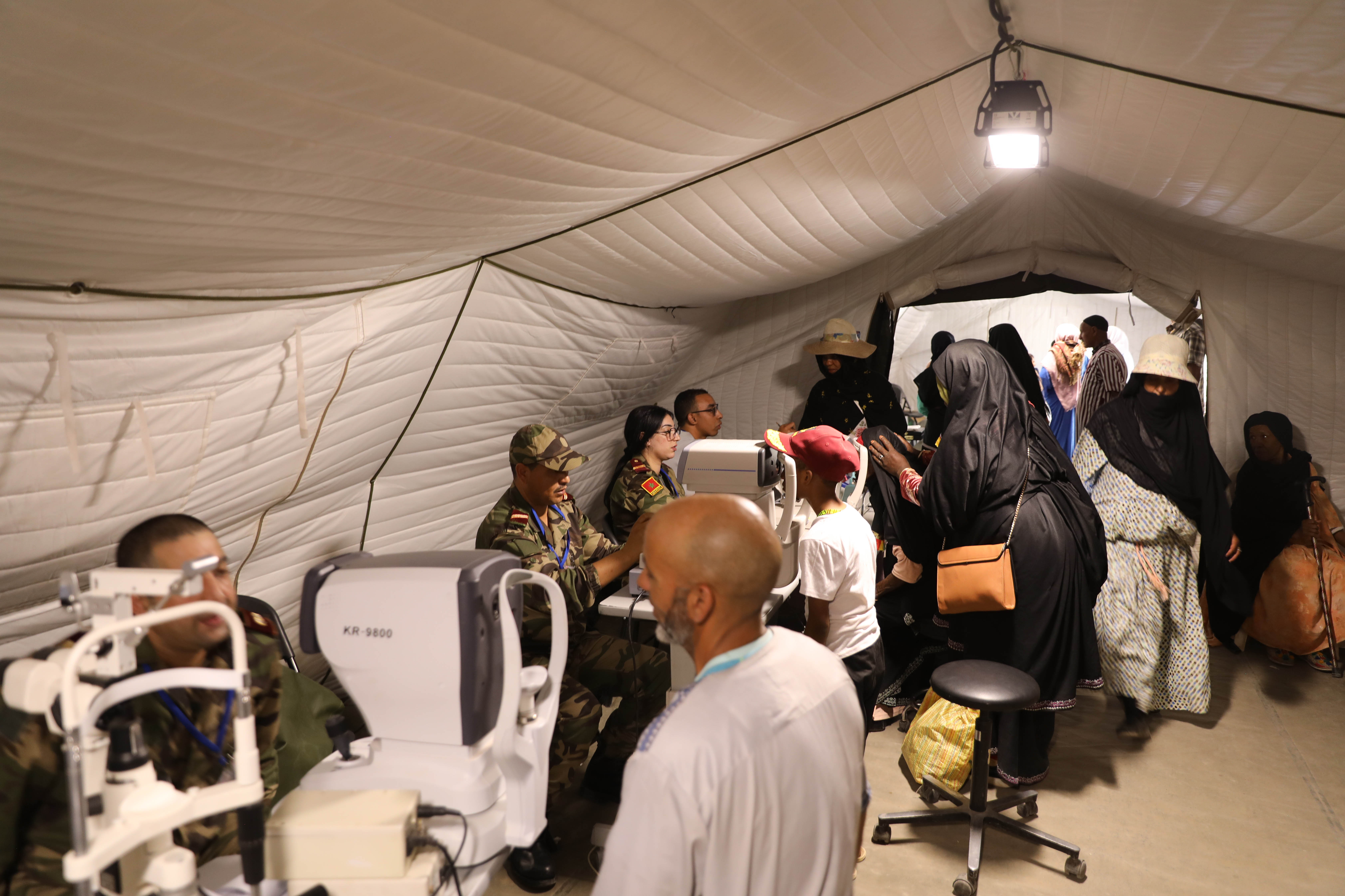 Moroccan Royal Armed Forces provide ophthalmological care to civilians at a field hospital during African Lion 2024 (AL24) in Akka, Morocco, May 25, 2024. The Utah National Guard has been partners with Morocco through the Department of Defense State Partnership Program for 21 years and led the effort to partner with the Moroccan Royal Armed Forces for a humanitarian civic assistance (HCA) operation during African Lion 2024 (AL24). The HCA event enables U.S. military personnel to work with their Moroccan counterparts to provide medical services to civilian populations who may lack access to medical care, while improving the operational readiness of participating service members. AL24 marks the 20th anniversary of U.S. Africa Command’s premier joint exercise led by U.S. Army Southern European Task Force, Africa (SETAF-AF), running from April 19 to May 31 across Ghana, Morocco, Senegal and Tunisia, with over 8,100 participants from 27 nations and NATO contingents. (U.S. Army photo by Spc. Trenton Pallone)
