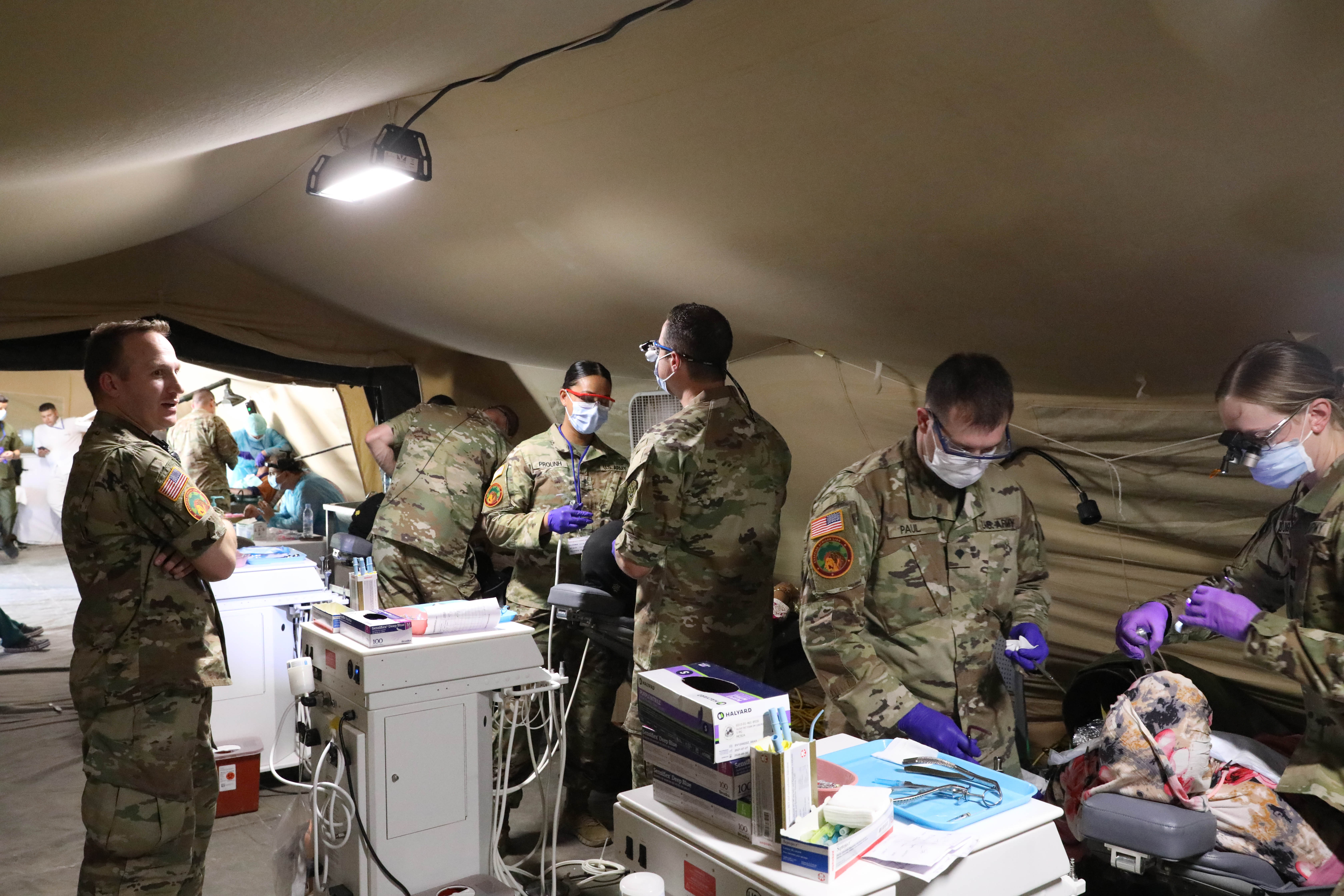 U.S. Army Soldiers assigned to the State Headquarters Medical Readiness Detachment (MRD), Utah National Guard provide dental care to patients at a field hospital as part of a humanitarian civic assistance mission during African Lion 2024 (AL24) in Akka, Morocco, May 25, 2024. The Utah National Guard has been partners with Morocco through the Department of Defense State Partnership Program since 2003 and led the effort to partner with the Moroccan Royal Armed Forces for a humanitarian civic assistance (HCA) operation during African Lion 2024 (AL24). The HCA event enables U.S. military personnel to work with their Moroccan counterparts to provide medical services to civilian populations who may lack access to medical care, while improving the operational readiness of participating service members. AL24 marks the 20th anniversary of the U.S. Africa Command’s premier joint exercise led by U.S. Army Southern European Task Force, Africa (SETAF-AF), running from April 19 to May 31 across Ghana, Morocco, Senegal and Tunisia, with over 8,100 participants from 27 nations and NATO contingents. (U.S. Army photo by Spc. Trenton Pallone)