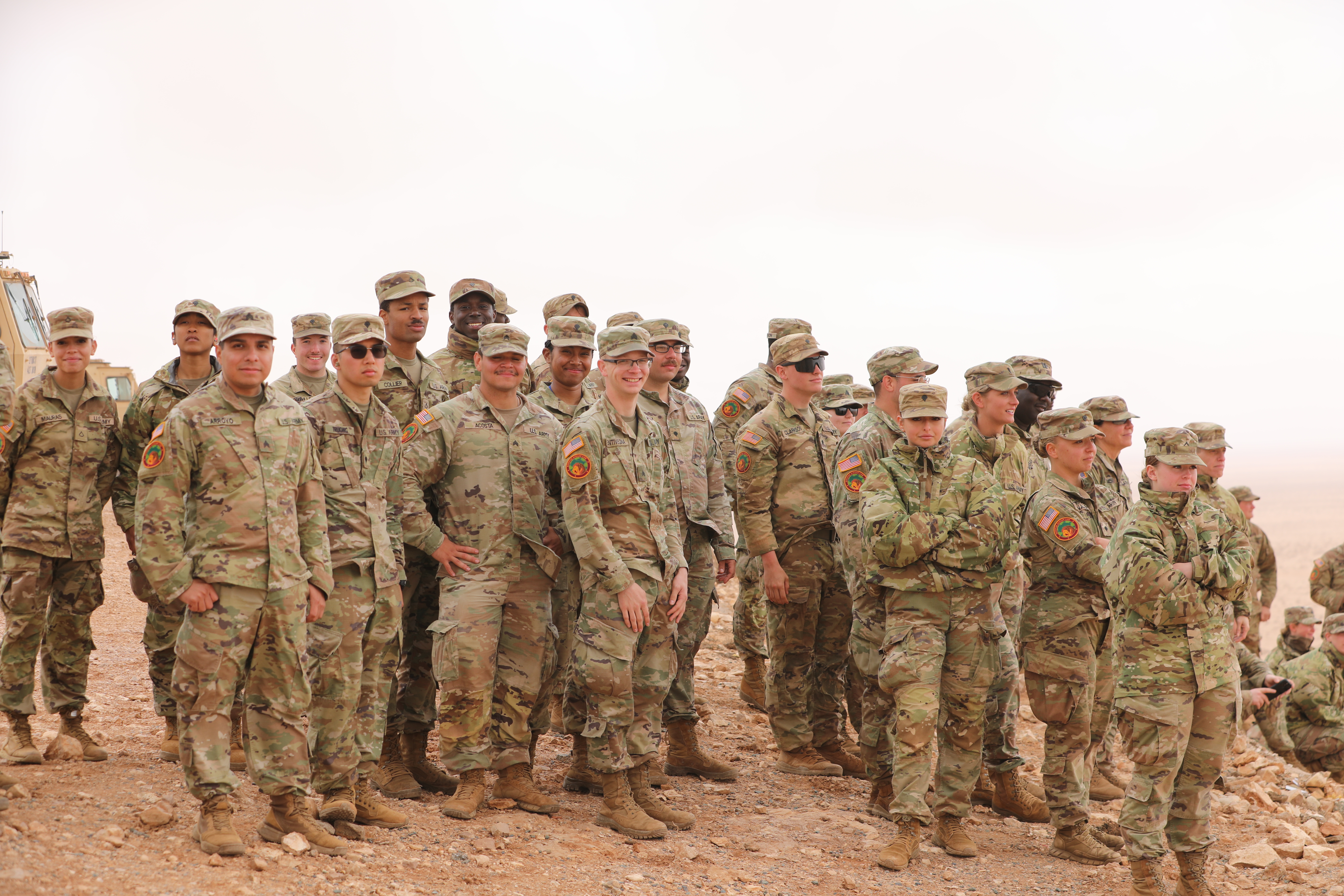 U.S. Soldiers assigned to the 27th Infantry Brigade Combat Team, New York Army National Guard observe a joint, combined live fire exercise with the Moroccan Royal Armed Forces during exercise African Lion in Tantan, Morocco, May 31, 2024. African Lion 2024 marks the 20th anniversary of U.S. Africa Command’s premier joint exercise led by U.S. Army Southern European Task Force, Africa (SETAF-AF), running from April 19 to May 31 across Ghana, Morocco, Senegal, and Tunisia, with over 9,100 participants from 27 nations and NATO contingents. (U.S. Army photo by Avery Schneider)