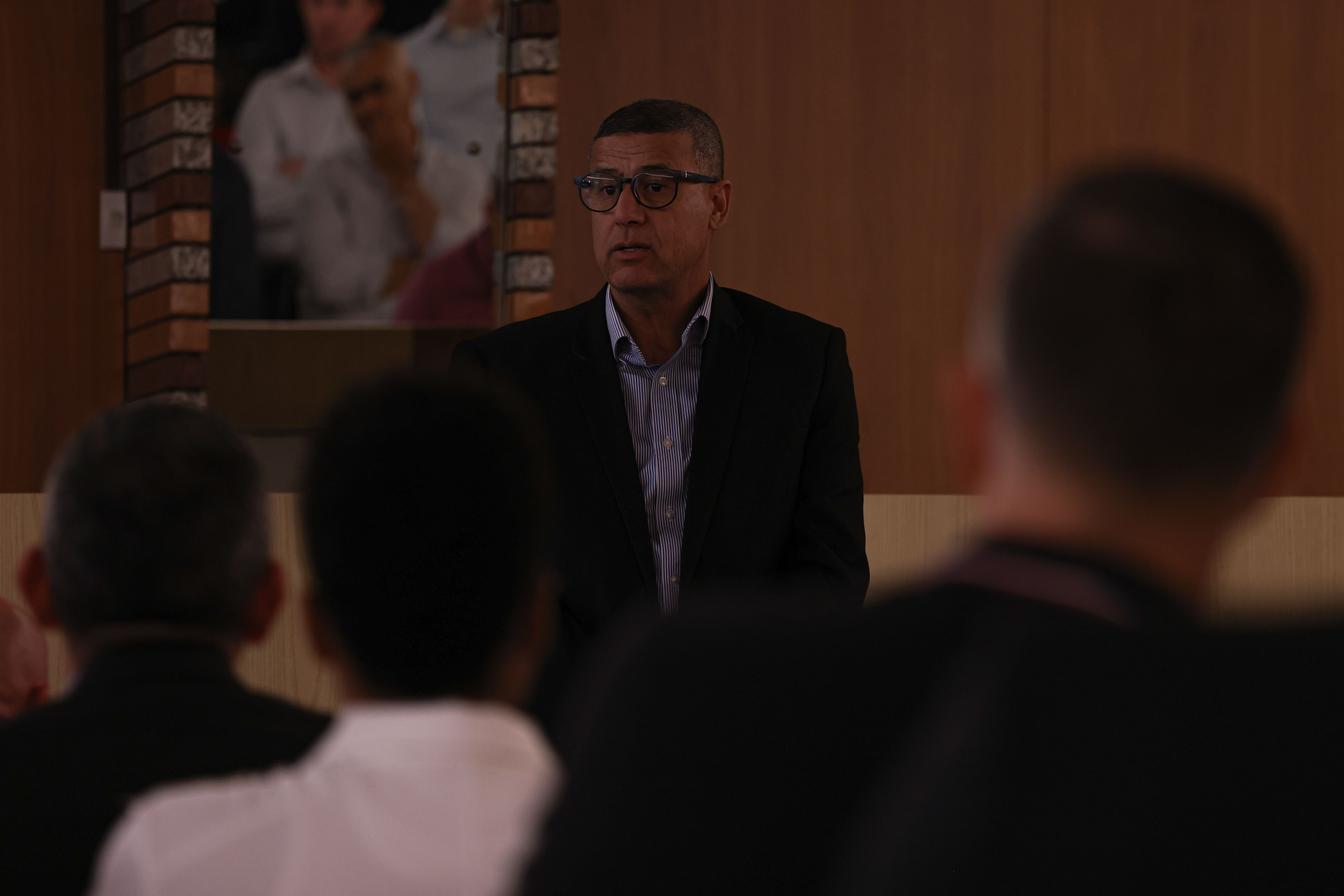 Tunisian Senior Col. Mguidich Mejid, African Lion 2025 (AL25) exercise director, speaks during the Tunisian-spoke mid planning event for exercise African Lion 2025 (AL25), at the Alfa Fiera Hotel, Vicenza, Italy, Nov. 13, 2024. AL25 is U.S. Africa Command's largest, premier, joint, combined annual exercise hosted by Morocco, Ghana, Senegal and Tunisia. More than 7,500 participants from 28 nations and NATO train together with a focus on enhancing readiness for U.S. and partner-nation forces. AL25 is a joint all-domain, multi-component, and multinational exercise, employing a full array of mission capabilities with the goal to strengthen interoperability among participants and set the theater for strategic access. (U.S. Army photo by Spc. Ivan Hernandez)