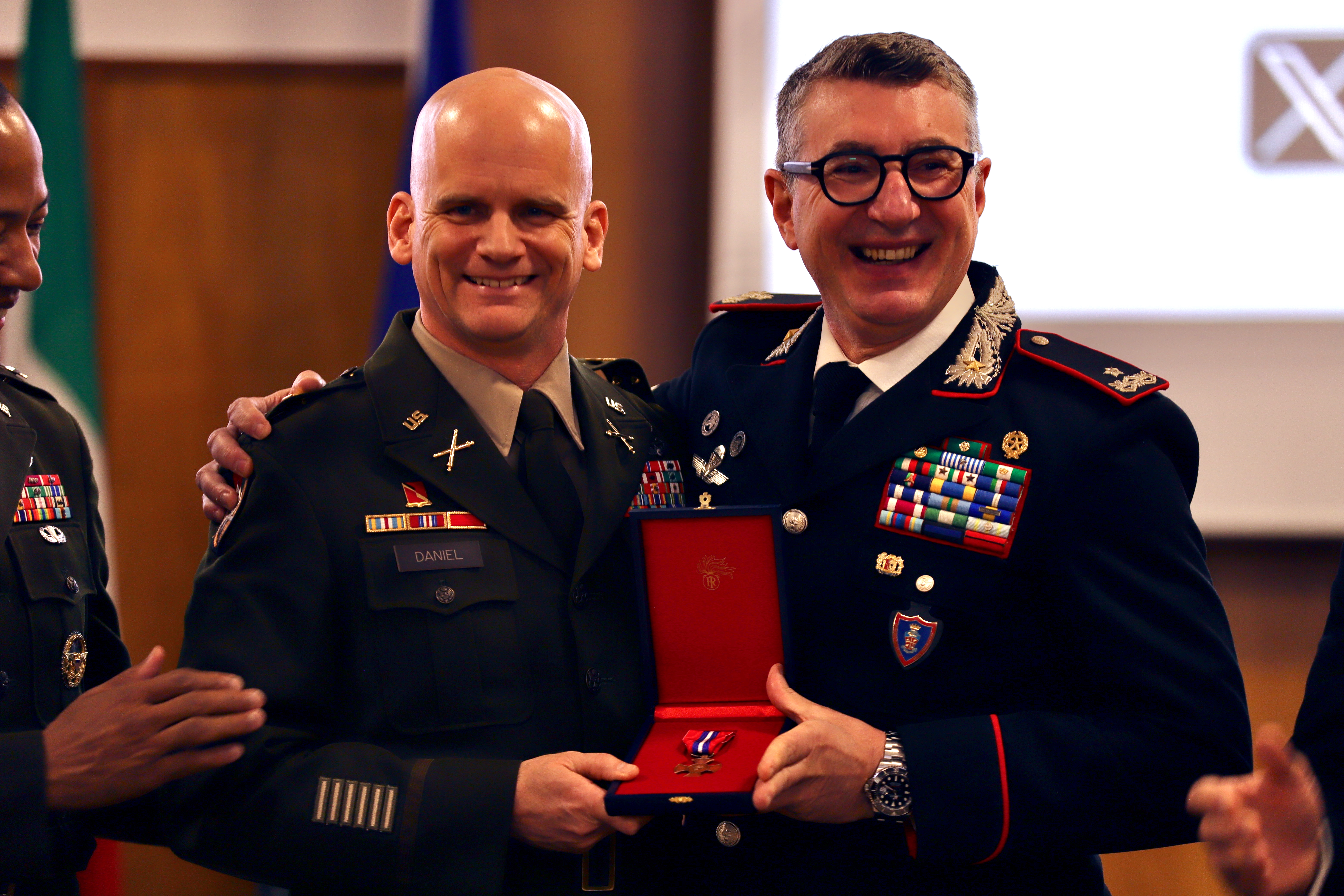 “It’s a great honor,” said Daniel. “I’m humbled by it. It indicates the close relationship between Italy and the United States. During my tenure as the CoESPU deputy commandant, I felt it was my responsibility to strengthen that partnership. In my mind, this award represents how closely our nations work together. CoESPU is an example of what the United States and Italy can accomplish together for global peace and security.”