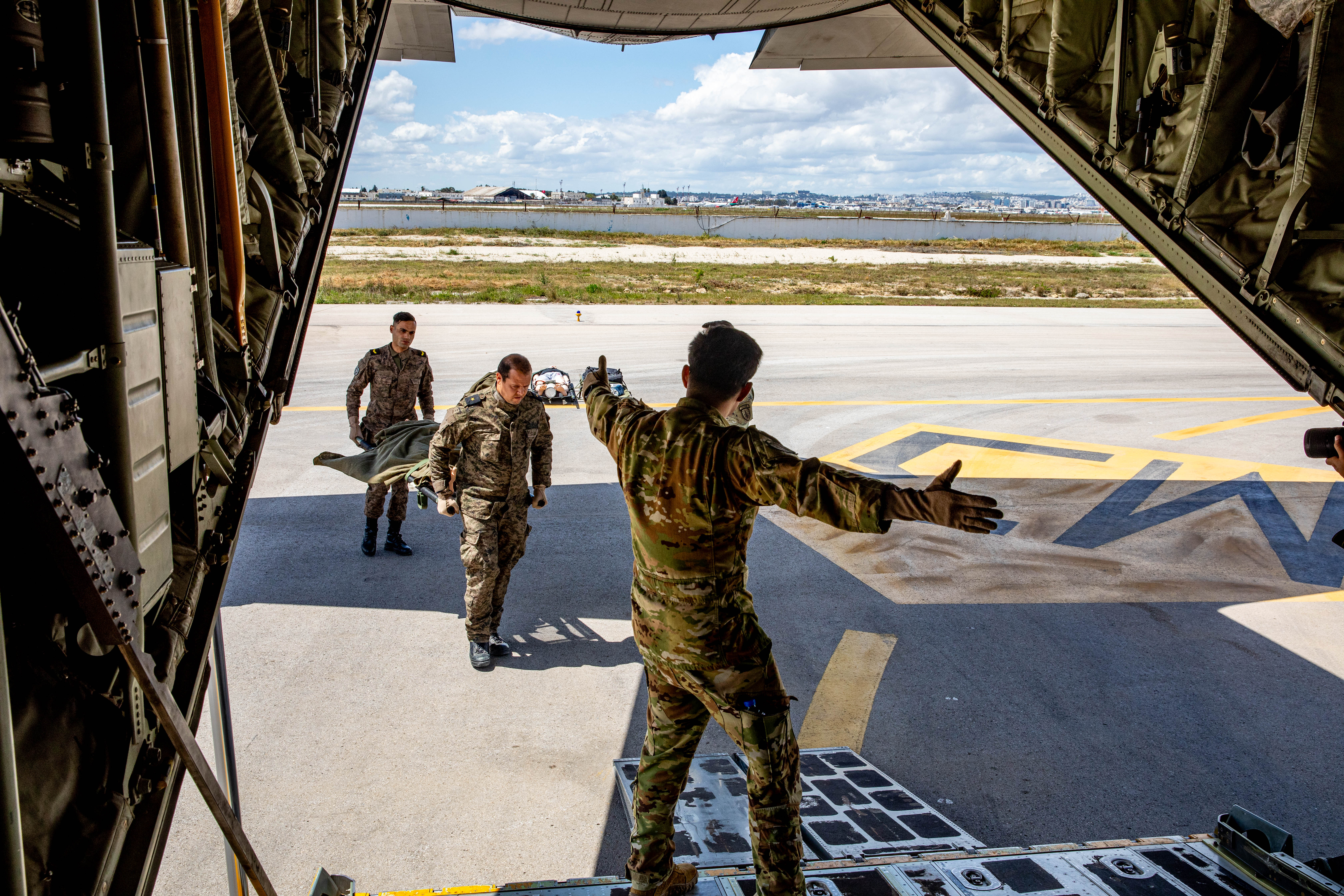 U.S. and Tunisian Armed Forces conduct aeromedical evacuation training at El Aouina Air Base, Tunisia, April 24, 2025, as part of African Lion 2025 (AL25). This training enhanced joint readiness and interoperability in responding to medical emergencies during multinational operations. AL25 is set to be the largest annual military exercise in Africa, bringing together over 40 nations, including seven NATO allies and 10,000 troops to conduct realistic, dynamic and collaborative training in an austere environment that intersects multiple geographic and functional combatant commands. Led by U.S. Army Southern European Task Force, Africa (SETAF-AF) on behalf of the U.S. Africa Command, AL25 takes place from April 14 to May 23, 2025, across Ghana, Morocco, Senegal, and Tunisia. This large-scale exercise will enhance our ability to work together in complex, multi-domain operations—preparing forces to deploy, fight and win. (U.S. Army Reserve photo by 1st Sgt. Jay Townsend)