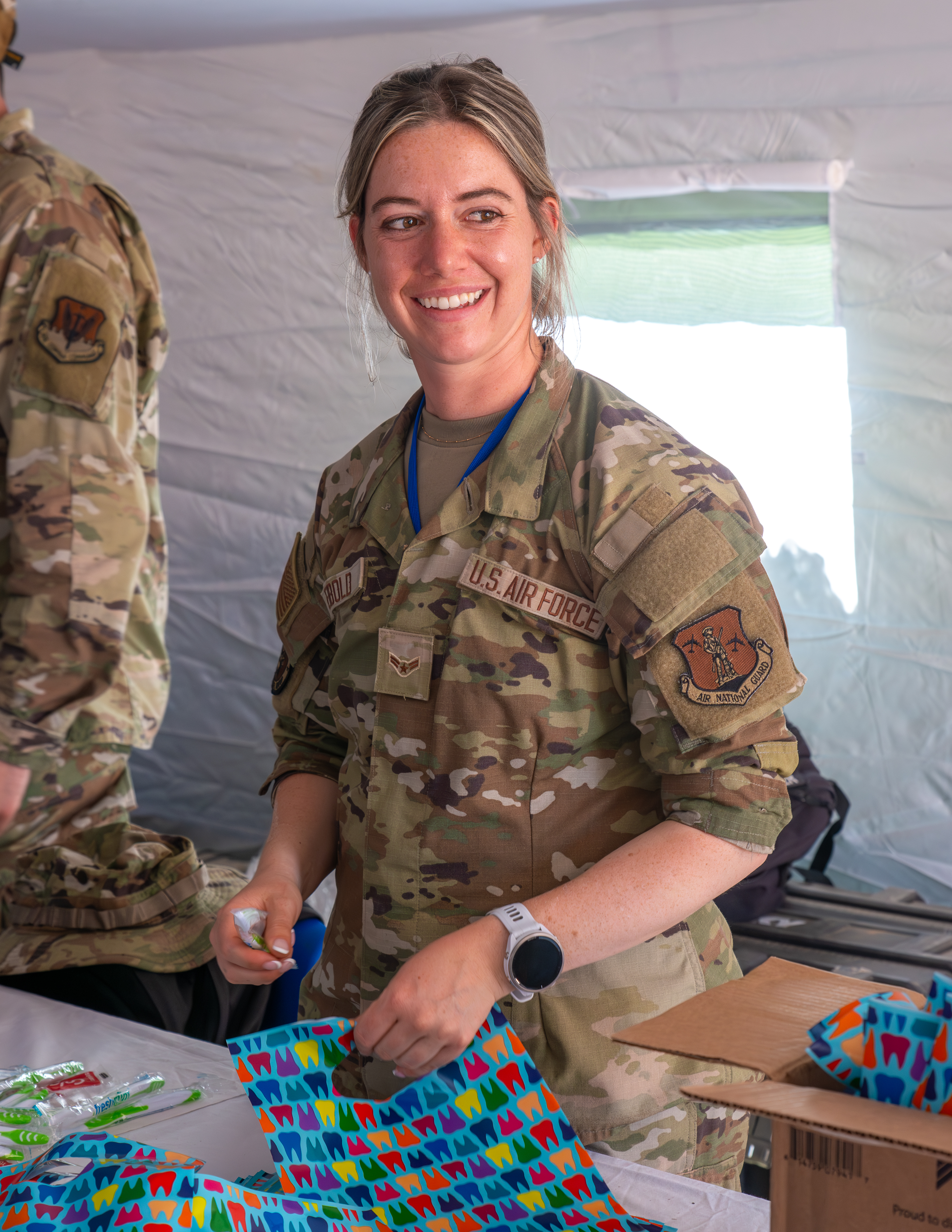 U.S. Air Force Airman 1st Class Summer Seibold, assigned to 151st Medical Group, Utah Air National Guard, puts together dental kits to hand out to patients at the Humanitarian Civic Assistance event in Anzi, Morocco, during African Lion 2025 (AL25) May 12, 2025. AL25, the largest annual military exercise in Africa, will take place from April 14 to May 23, 2025. Led by U.S. Africa Command with over 10,000 troops from more than 50 nations, including seven NATO allies, across Ghana, Morocco, Senegal, and Tunisia. The exercise aims to bolster military readiness, enhance lethality, and foster stronger partnerships, ultimately improving joint capabilities in complex multi-domain environments to enable participating forces to deploy, fight, and win. (U.S. Air National Guard photo by Maj. Marie Denson)