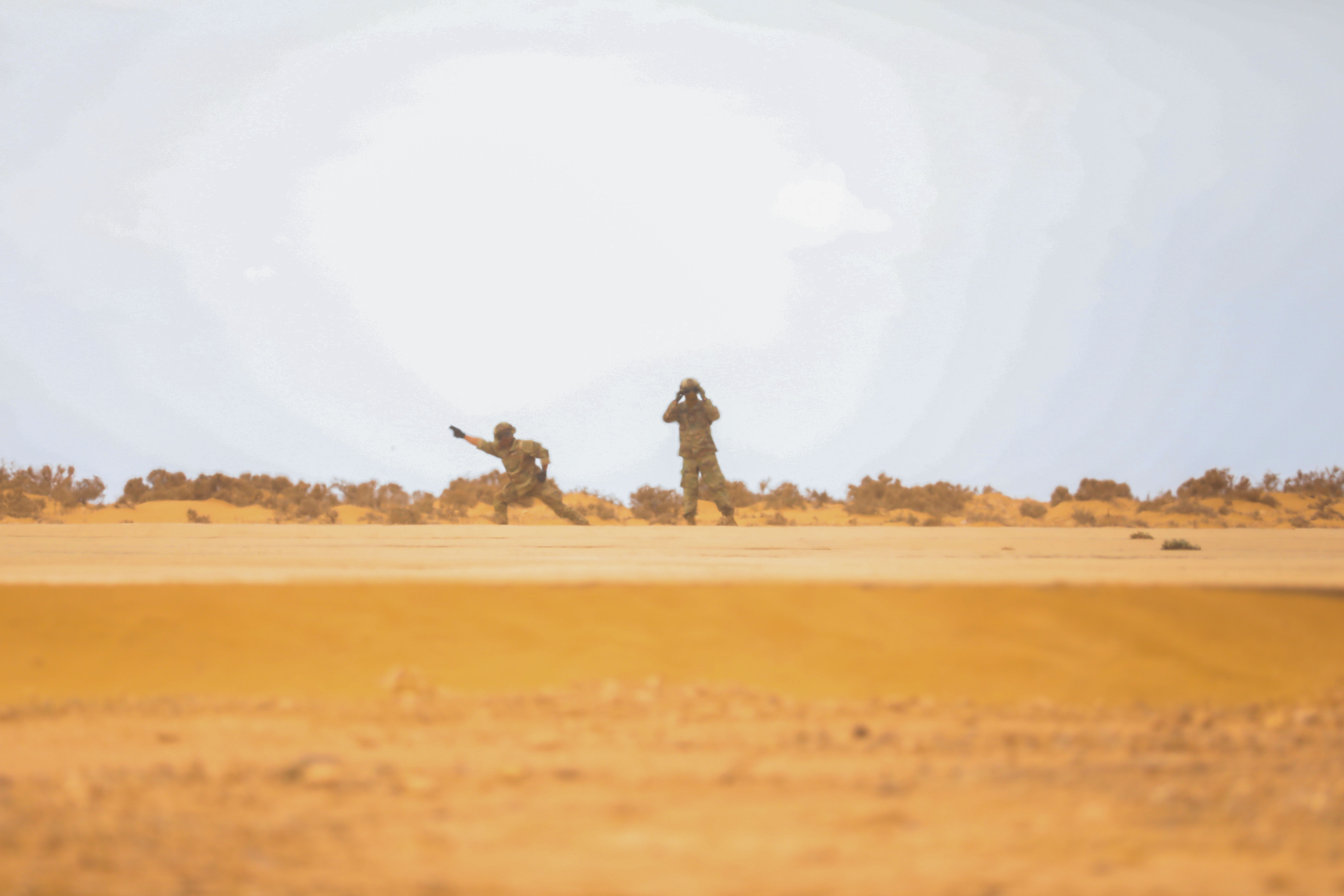 U.S. Army Sgt. Kyle Almonte, a motor transport operator assigned to 3rd Battalion, 197th Field Artillery Regiment, New Hampshire Army National Guard, guides a Royal Moroccan Armed Forces CH-47 out of the landing zone during a multinational sling load exercise at African Lion 2025 (AL25), May 17, 2025, in TanTan, Morocco. AL25, the largest annual military exercise in Africa, brings together over 50 nations, including seven NATO allies and 10,000 troops to conduct realistic, dynamic and collaborative training in an austere environment that intersects multiple geographic and functional combatant commands. Led by U.S. Army Southern European Task Force, Africa (SETAF-AF,) on behalf of the U.S. Africa Command, AL25 takes place from April 14 to May 23, 2025, across Ghana, Morocco, Senegal, and Tunisia This large-scale exercise will enhance our ability to work together in complex, multi-domain operations - preparing forces to deploy, fight, and win. (U.S. Army Reserve photo by Sgt. 1st Class Jessica Forester)