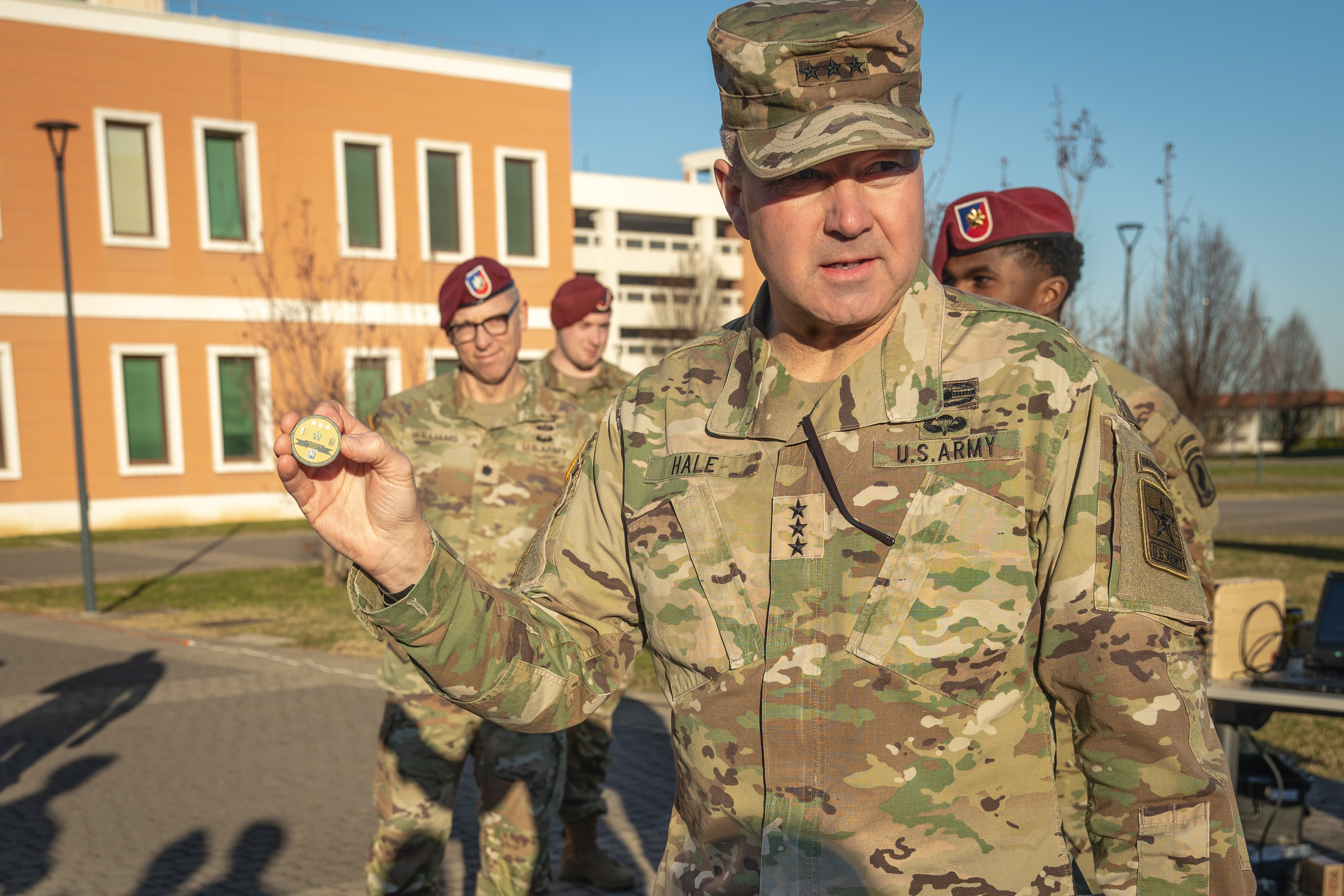 VICENZA, Italy — U.S. Army Lt. Gen. Anthony R. Hale, Deputy Chief of Staff, G-2, visited soldiers of the 173rd Airborne Brigade on January 13, 2025, to discuss the latest military innovations and their application on the front lines. Hale emphasized the importance of integrating cutting-edge technologies to enhance operational capabilities and maintain readiness.