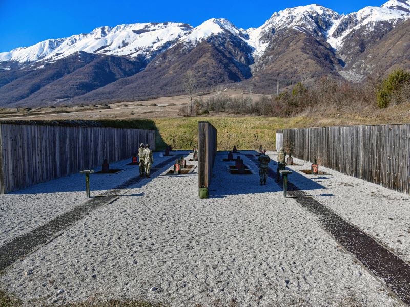 Soldiers assigned to U.S. Army Southern European Task Force, Africa engage pop-up targets with M17 pistols during marksmanship training at Cao Malnisio Range in Pordenone, Italy, Jan. 26, 2021. (U.S. Army photo by Davide Dalla Massara)