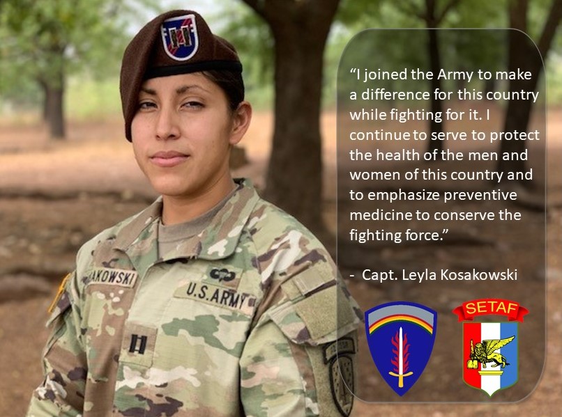 Why I Serve: “I joined the Army to make a difference for this country while fighting for it. I continue to serve to protect the health of the men and women of this country and to emphasize preventive medicine to conserve the fighting force.” -- Capt. Leyla Kosakowski, a 2nd Security Force Assistance Brigade environmental science and engineering officer (U.S. Army photo by Maj. Kymberley Jurado)