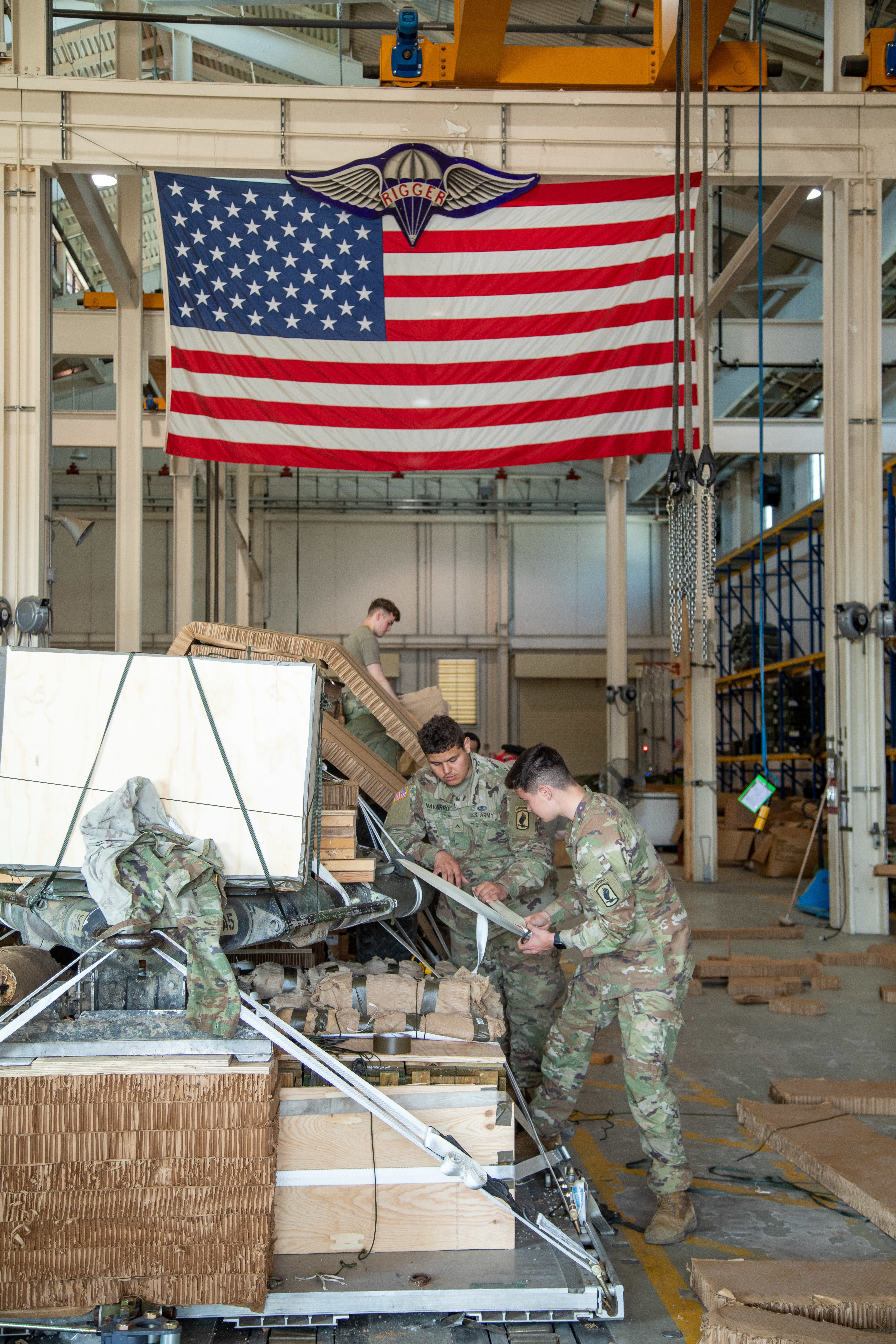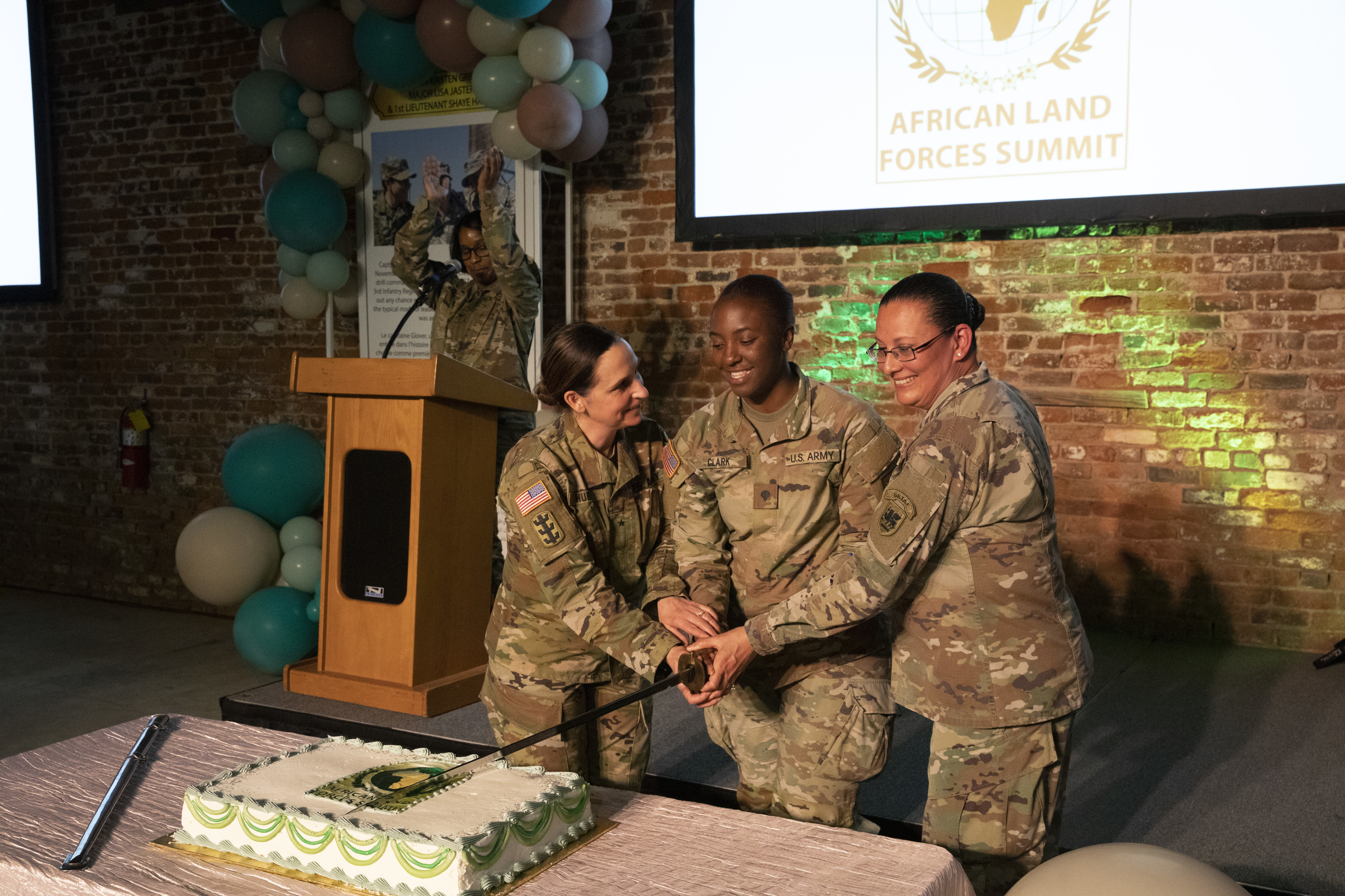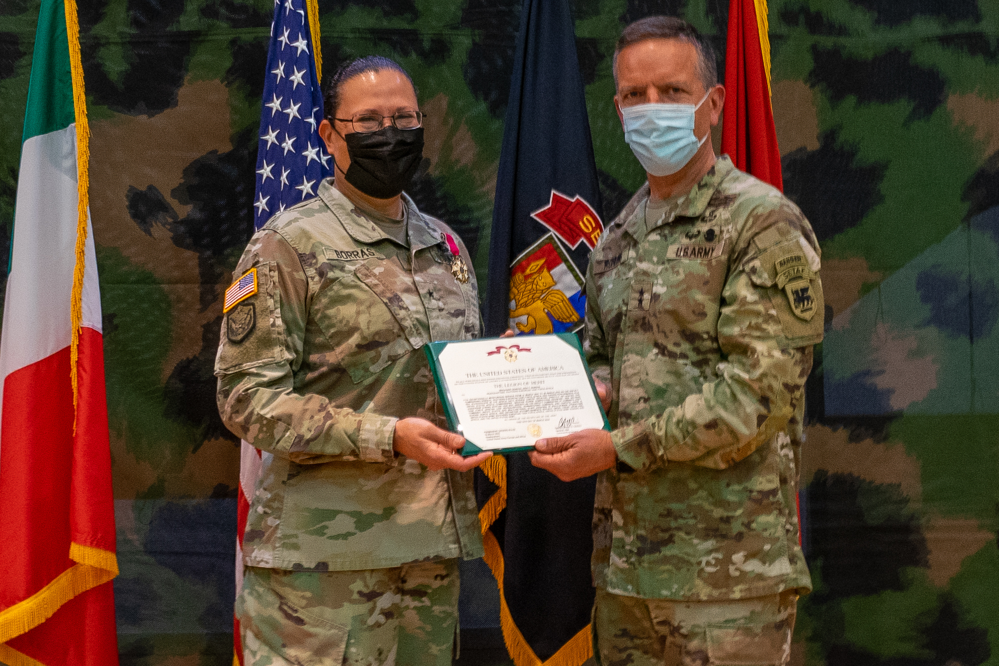 Maj. Gen. Andrew Rohling, commanding general, U.S. Army Southern European Task Force, Africa, listens to Maj. Gen. David Ling, commanding general, U.S. Army Reserve 79th Theater Sustainment Command, during a rehearsal of concept drill for a joint exercise on Caserme Ederle, Vicenza, Italy, April 5, 2022. Rohling's SETAF-AF headquarters hosted servicemembers from Navy, Air Force, U.S. Marine Corps and several U.S. inter-agencies for the 10-day command post exercise. The exercise tested SETAF-AF's ability to operate as the nucleus of a joint task force in support of U.S. Africa Command. The more than 350 troops participating in the CPX are scheduled to come together again in July for Exercise African Lion 22 in Morocco, Tunisia, Senegal and Ghana. There they will join more than 7,000 other U.S., Allies and partner participants in USAFRICOM's largest, multinational joint exercise. AL22 is a joint, all domain, multi-component, and multi-national exercise, which will employ a full array of mission capabilities with the continued goal of strengthening interoperability among participants. (U.S. Army photo by Chris House)