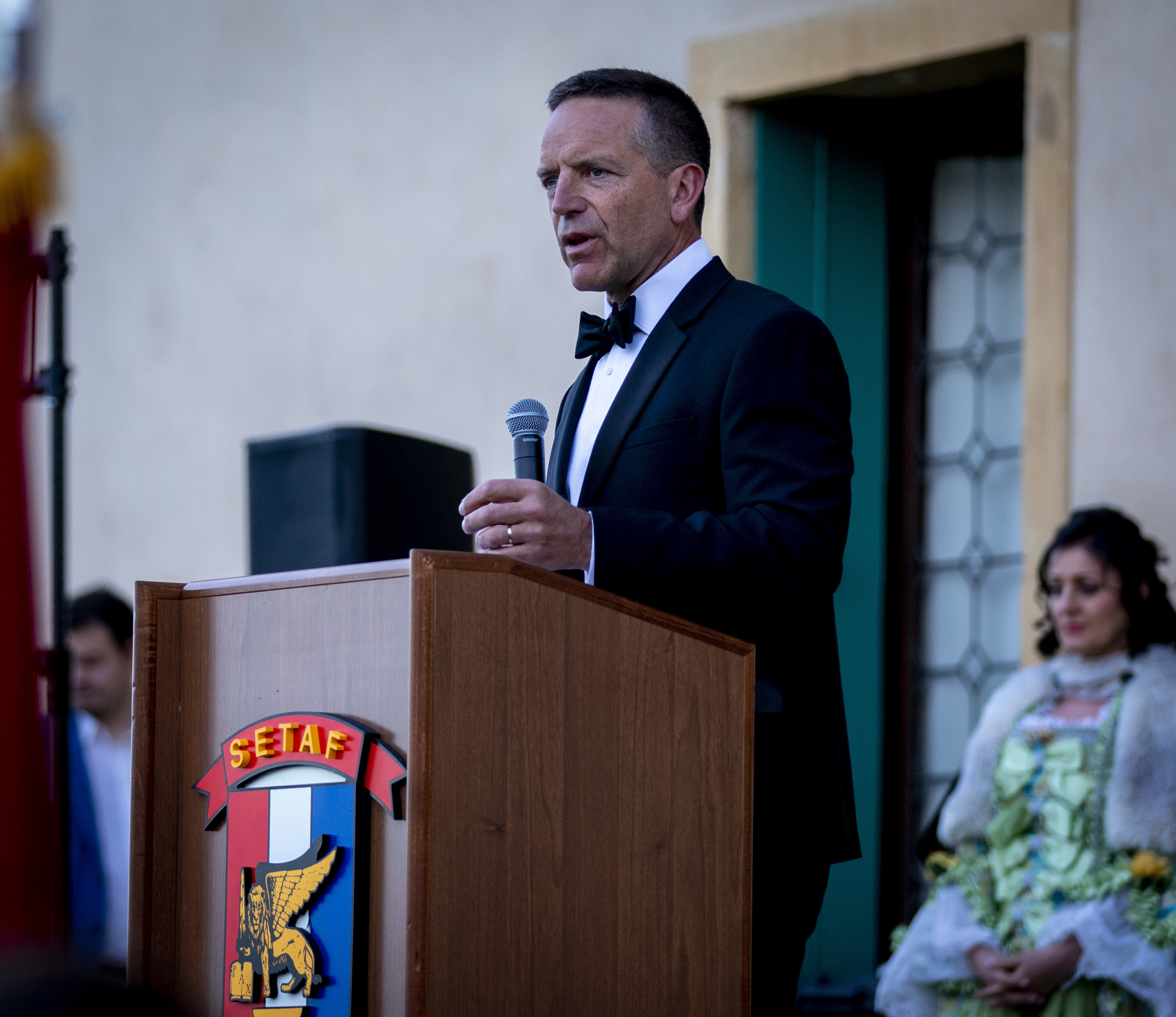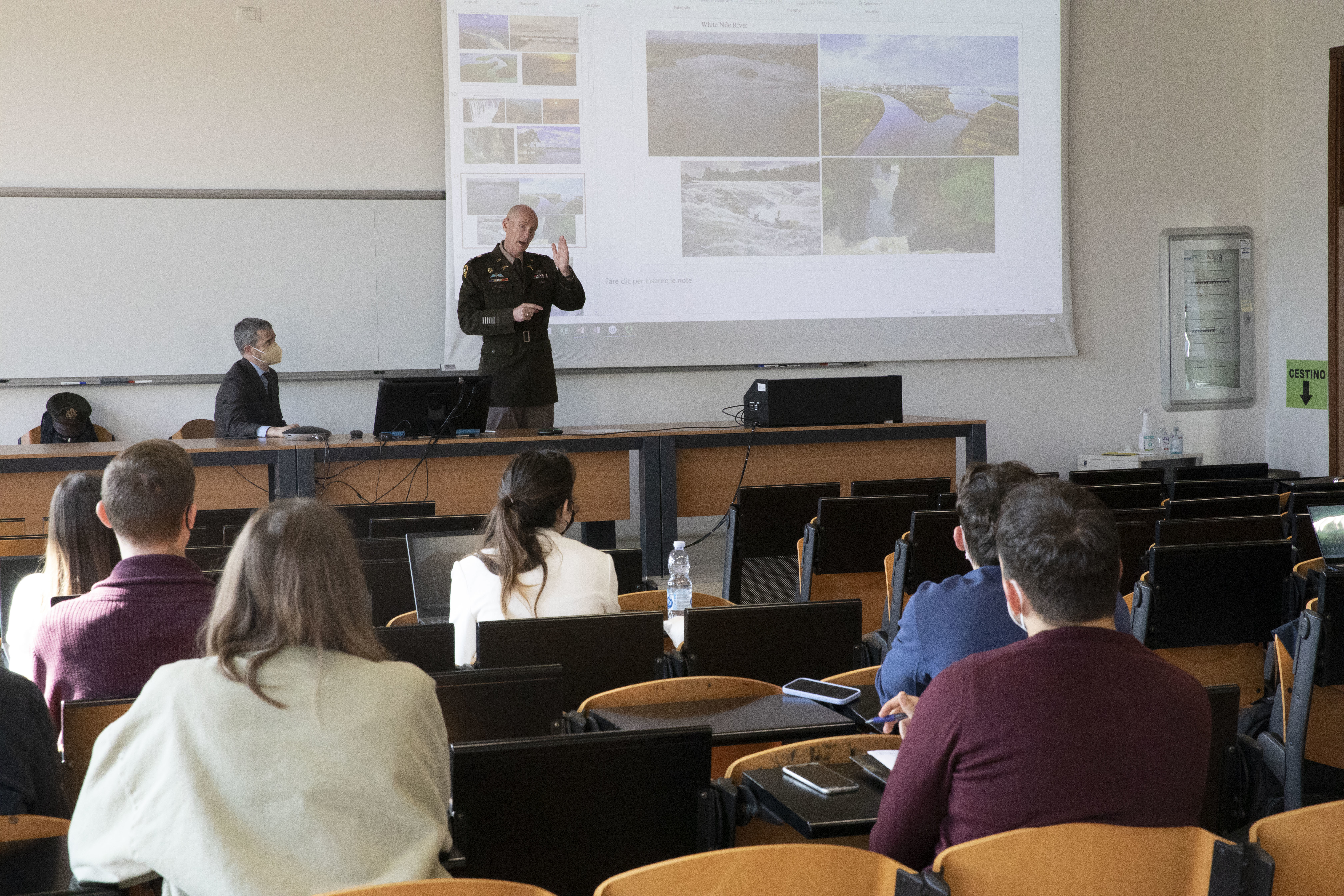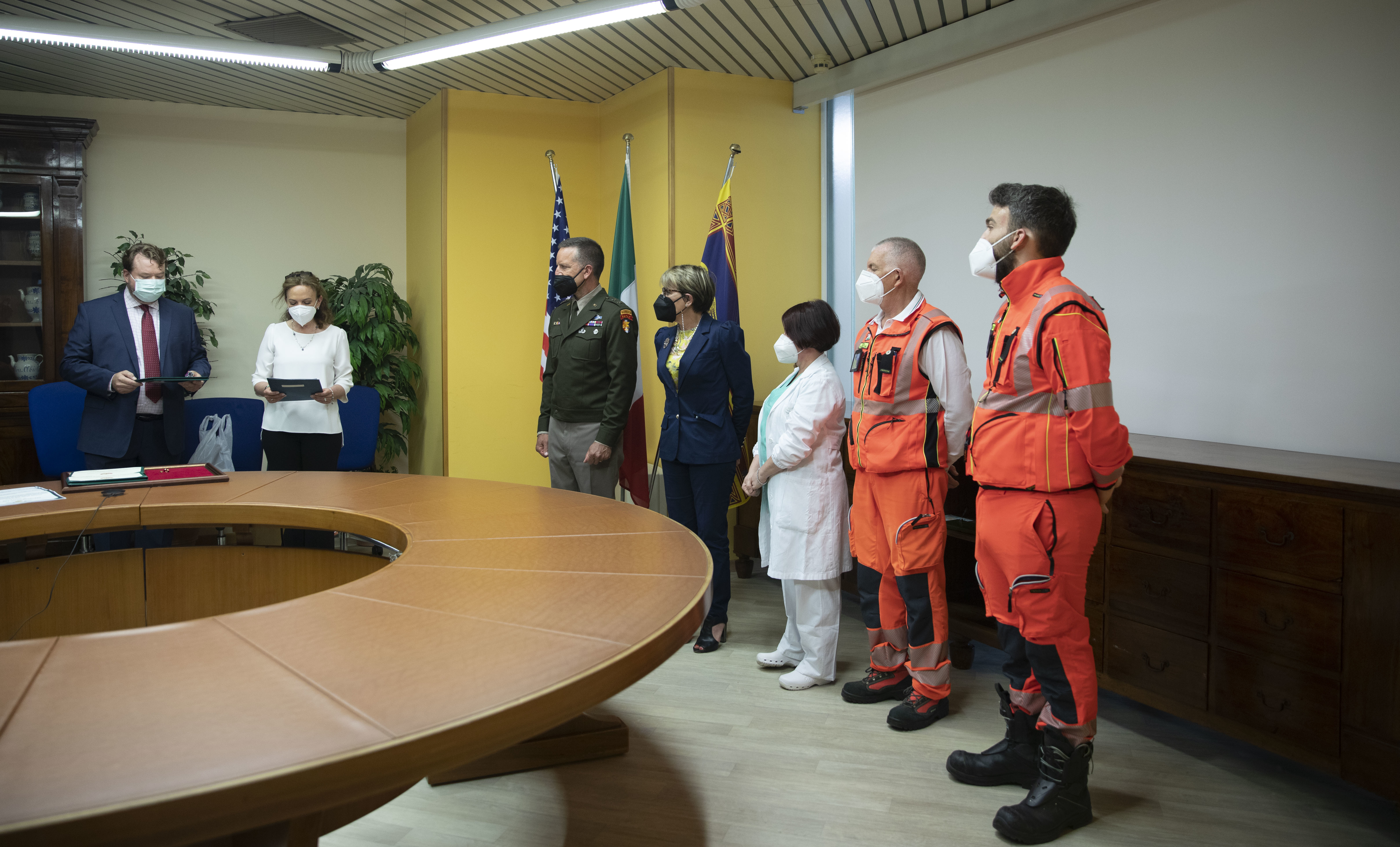 Maj. Gen. Andrew Rohling, commanding general, U.S. Army Southern European Task Force, Africa, listens to Maj. Gen. David Ling, commanding general, U.S. Army Reserve 79th Theater Sustainment Command, during a rehearsal of concept drill for a joint exercise on Caserme Ederle, Vicenza, Italy, April 5, 2022. Rohling's SETAF-AF headquarters hosted servicemembers from Navy, Air Force, U.S. Marine Corps and several U.S. inter-agencies for the 10-day command post exercise. The exercise tested SETAF-AF's ability to operate as the nucleus of a joint task force in support of U.S. Africa Command. The more than 350 troops participating in the CPX are scheduled to come together again in July for Exercise African Lion 22 in Morocco, Tunisia, Senegal and Ghana. There they will join more than 7,000 other U.S., Allies and partner participants in USAFRICOM's largest, multinational joint exercise. AL22 is a joint, all domain, multi-component, and multi-national exercise, which will employ a full array of mission capabilities with the continued goal of strengthening interoperability among participants. (U.S. Army photo by Chris House)