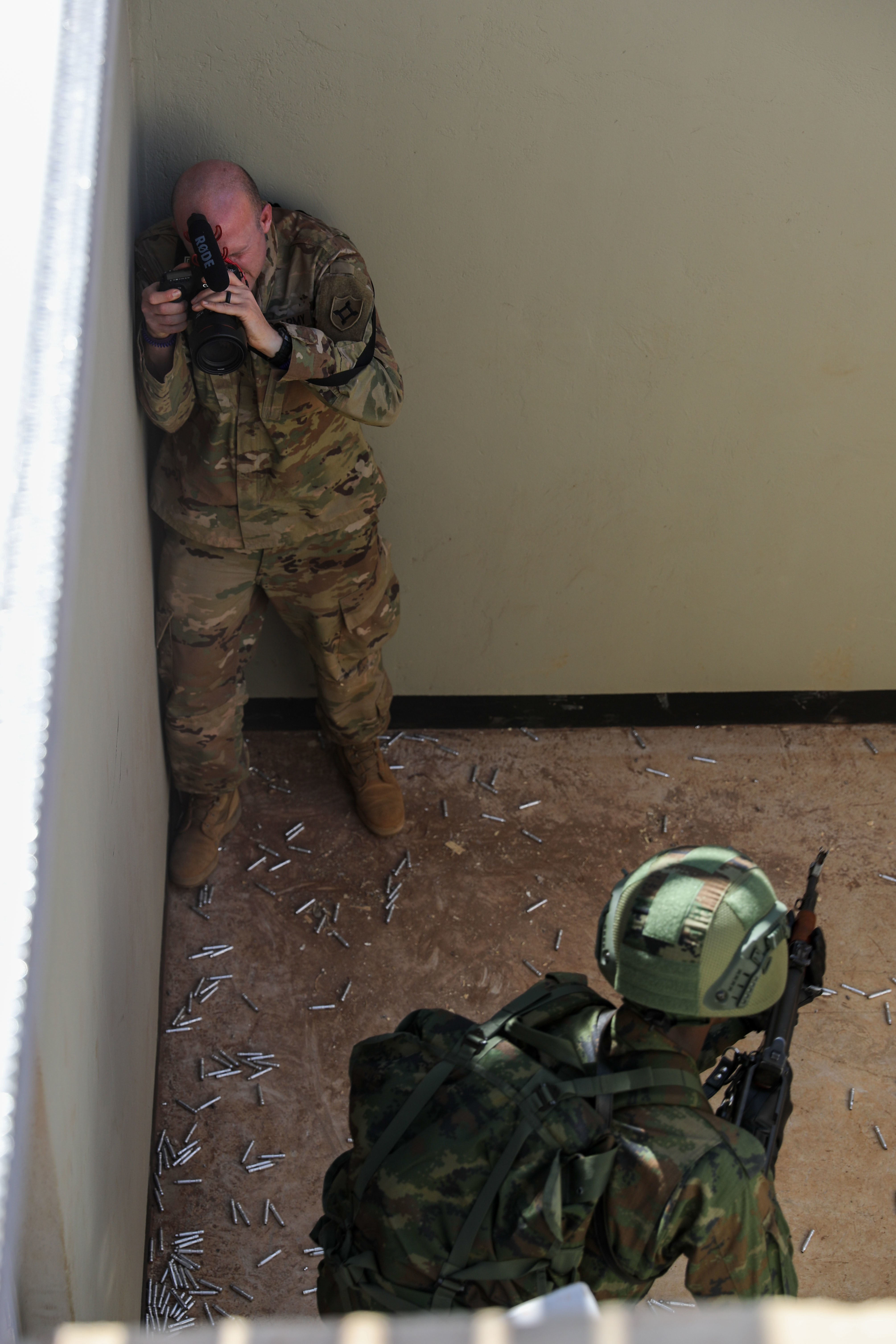 U.S. Army Sgt. Justin Martin, public affairs specialist, 107th Mobile Public Affairs Detachment, documents training during Exercise Justified Accord, Isiolo, Kenya, March 11, 2022. Exercise Justified Accord takes place from Feb. 28 through Mar. 17 in Kenya. Over 800 personnel participated in the exercise which focused on enabling readiness for the U.S. and multinational partners. (U.S. Army photo by Sgt N.W. Huertas)