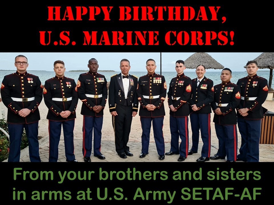 U.S. Army Southern European Task Force, Africa wishes the U.S. Marine Corps a very happy birthday. SETAF-AF is proud to partner with Marines on a number of activities, not least the North and West Africa Response Force in support of U.S. Africa Command. (U.S. Army photo illustration)