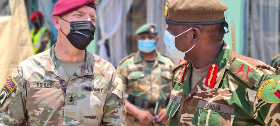 Maj. Gen. Andrew M. Rohling, the U.S. Army Southern European Task Force, Africa commander, visited Zambia to discuss strengthening security cooperation between the United States and Zambia. (U.S. Army photo by Col. Ryan S. Dillon)