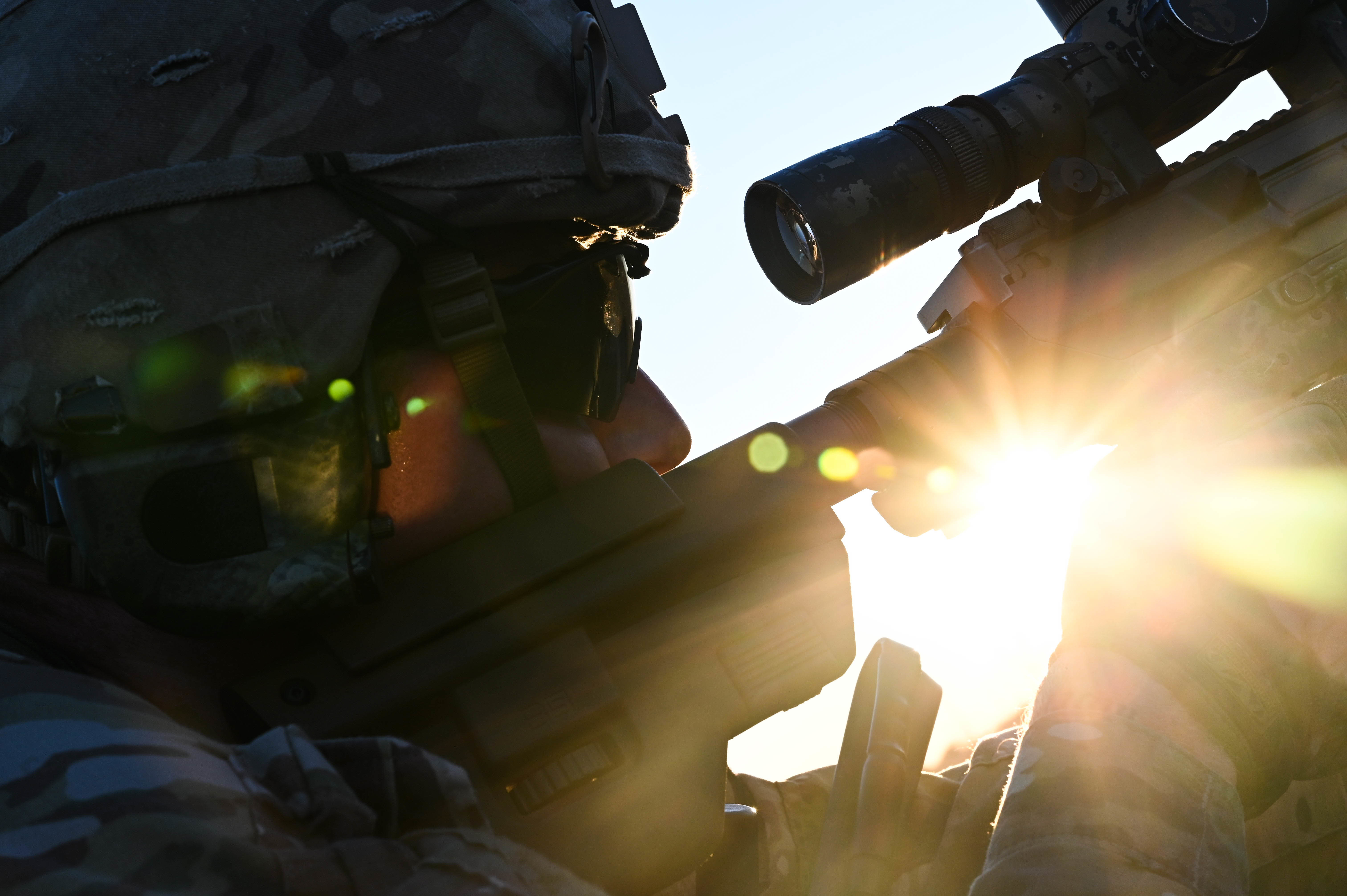 A 173rd Airborne Brigade Soldier, assigned to U.S. Africa Command’s North and West Africa Response Force (NARF), provides security during an Air Ground Integration exercise, Dec. 7, 2021, at Aviano Air Base, Italy. The exercise strengthened the capability of the NARF to respond to crisis and protect American interests in Africa. (U.S. Air Force photo by Tech. Sgt. Michael Cossaboom)