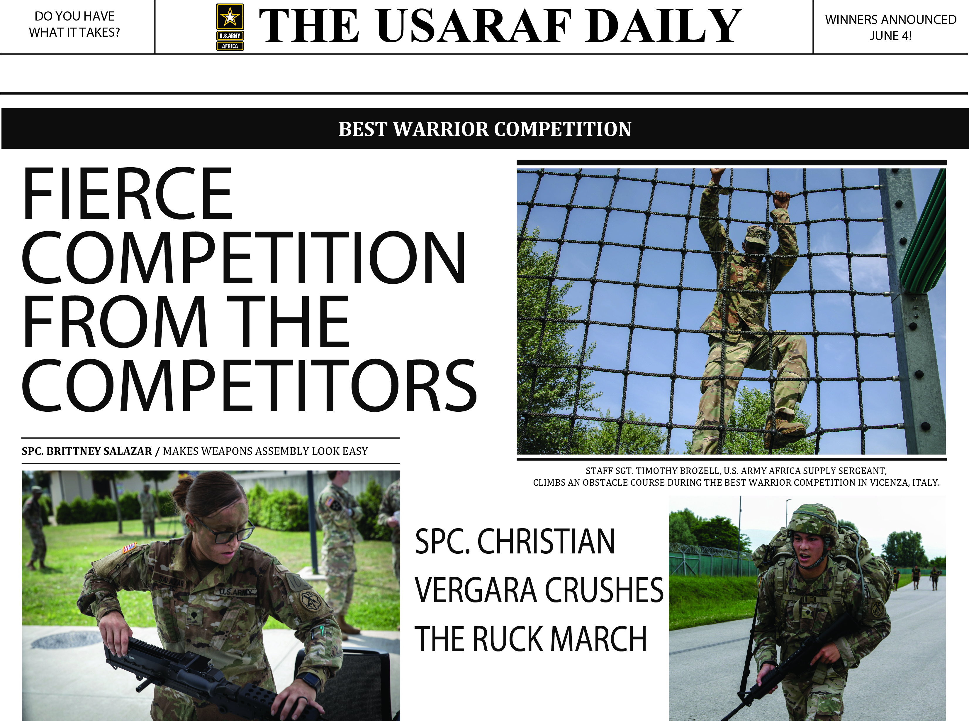The U.S. Army Africa Best Warrior Competition, scheduled for June 2-4, selects the best junior officers, NCOs and Soldiers.