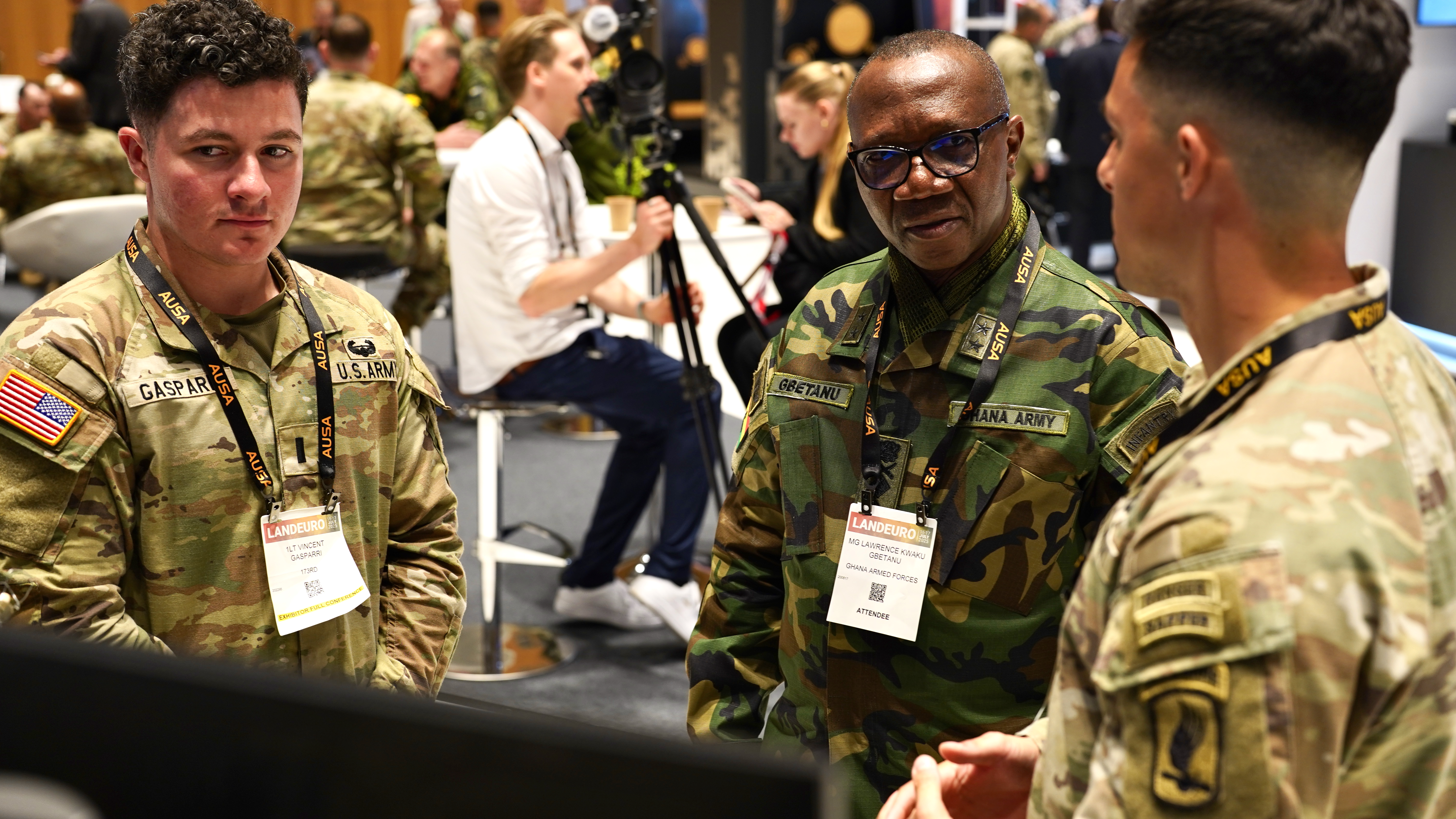 U.S. Soldiers assigned to 3rd Battalion, 197th Field Artillery Regiment, New Hampshire Army National Guard, discuss procedures with the crew of a Moroccan CH-47 Chinook, Royal Moroccan Armed Forces, ahead of a multinational sling load exercise at Cap Draa, Tantan, Morocco, May 17, 2025, during African Lion 2025 (AL25). This exercise required this multinational team to stage an ammunition package on the landing zone for retrieval by Moroccan air assets, demonstrating how munitions can be transported. AL25, the largest annual military exercise in Africa, brings together over 50 nations, including seven NATO allies and 10,000 troops to conduct realistic, dynamic and collaborative training in an austere environment that intersects multiple geographic and functional combatant commands. Led by U.S. Army Southern European Task Force, Africa (SETAF-AF,) on behalf of the U.S. Africa Command, AL25 takes place from April 14 to May 23, 2025, across Ghana Morocco, Senegal, and Tunisia This large-scale exercise will enhance our ability to work together in complex, multi-domain operations - preparing forces to deploy, fight, and win. (U.S. Army Reserve photo by Sgt. 1st Class Jessica Forester)