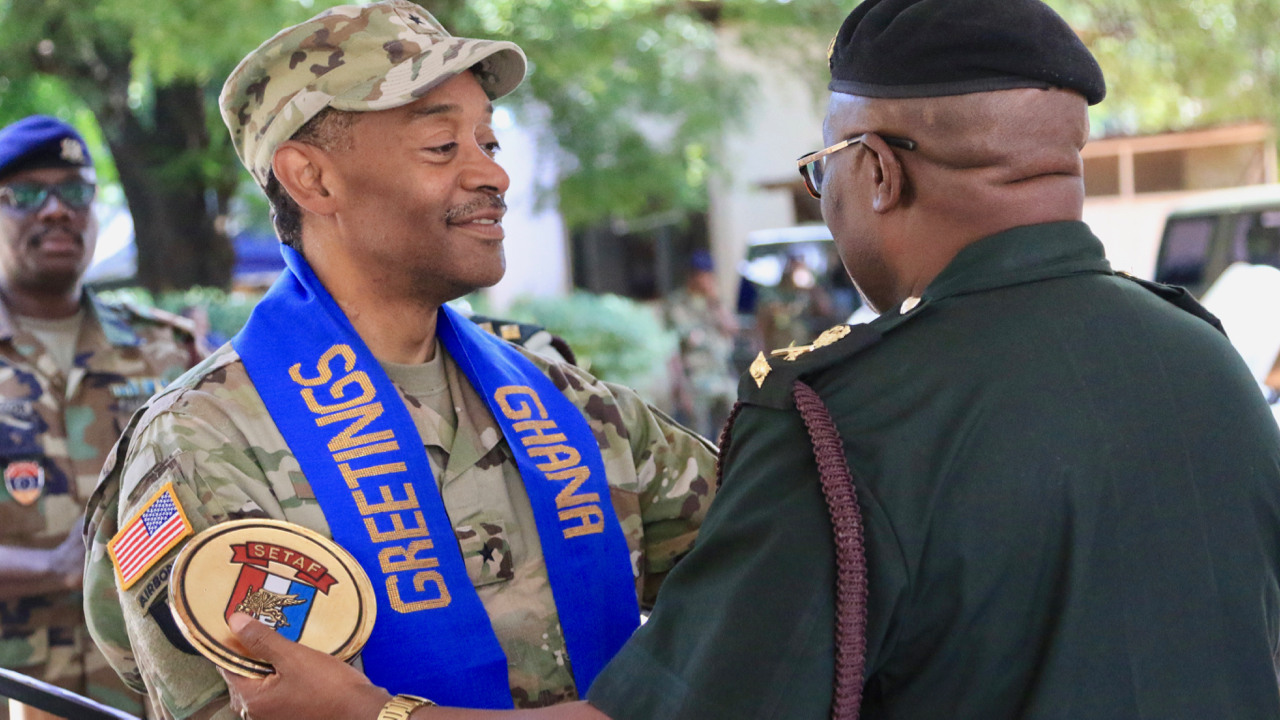 Brig. Gen. Jonathan Woodson, 3rd MEDCOM DCG, extends gratitude to Ghanaian Armed Force's 37th Military Hospital leadership at U.S. Army Africa's MEDRETE 18-4.