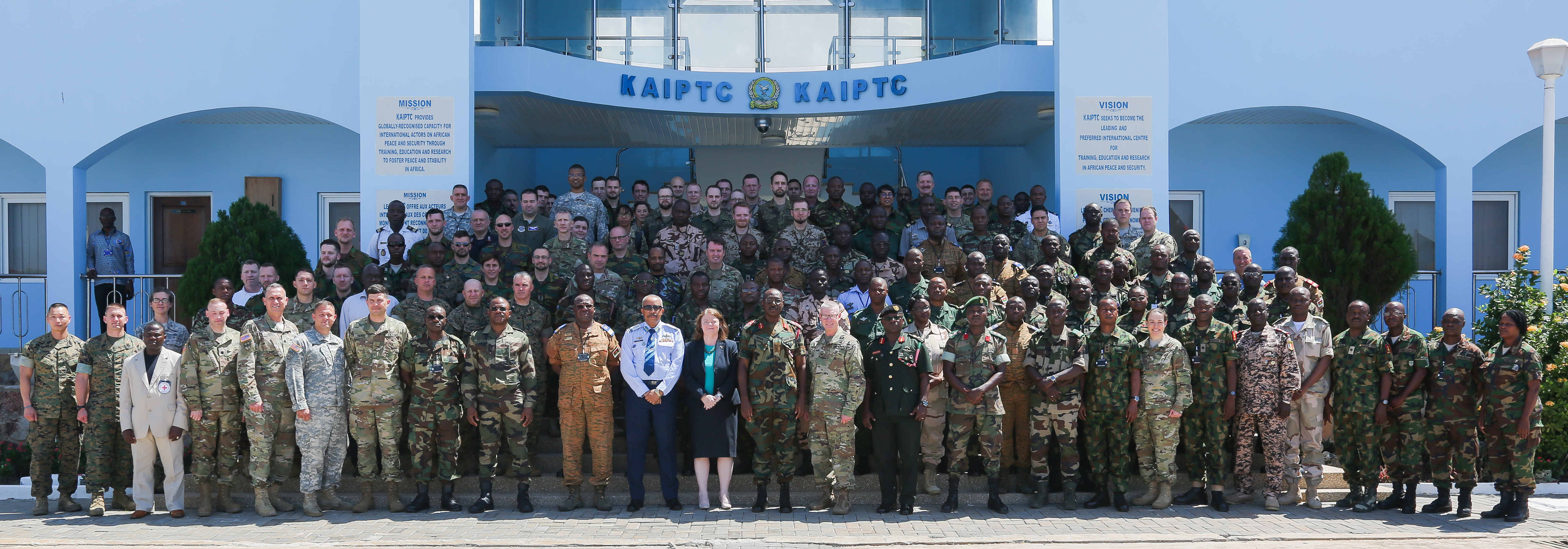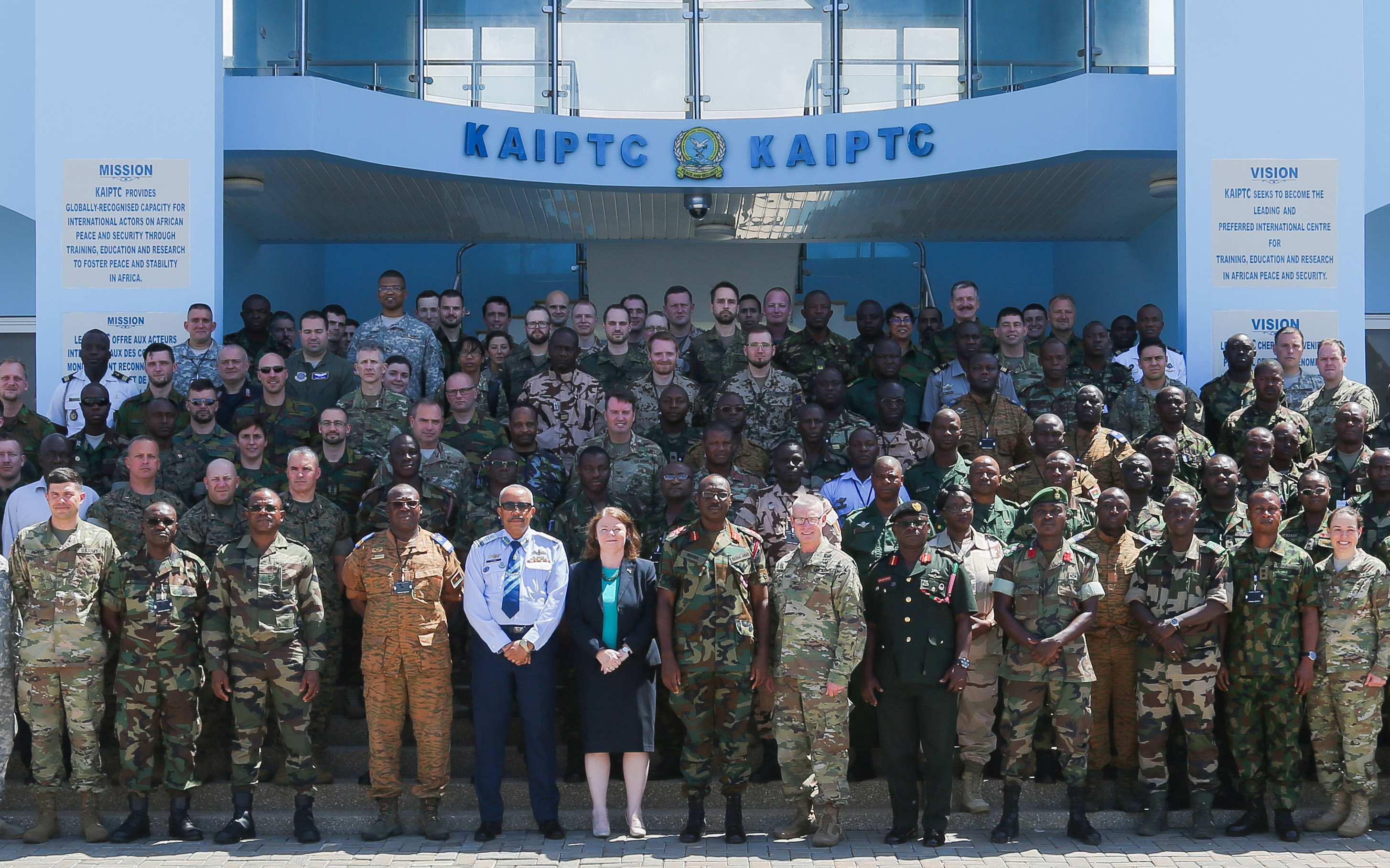 Exercise participants from more than 20 nations gather for a group photo after the opening ceremony of United Accord 2017 at the Kofi Annan International Peacekeeping Training Centre in Accra, Ghana, May 19, 2017. United Accord (formerly Western Accord) 2017 is an annual, combined, joint military exercise that promotes regional relationships, increases capacity, trains U.S. and Western African forces, and encourages cross training and interoperability. (U.S. Army photo by Pfc. Joseph Friend)