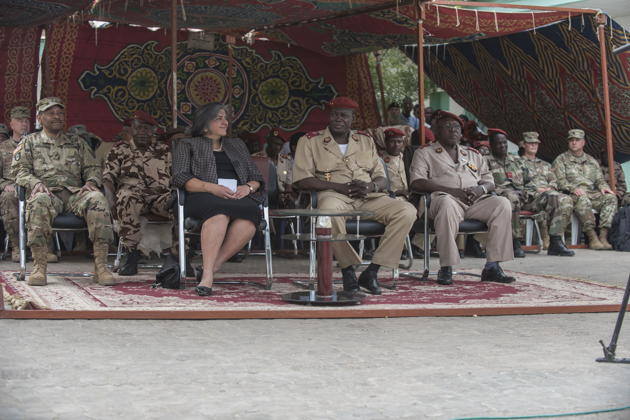 Chadians and Americans participate in the Closing Ceremony of Medical Readiness Training Exercise held at the Military Teaching Hospital in N'Djamena, Chad, May 18. MEDRETE 17-3 is the third in a series of medical readiness training exercises that USARAF is scheduled to facilitate in various countries in Africa. The mutually beneficial exercise offers opportunities for the partnered militaries to share best practices and improve medical treatment processes. (U.S. Army Africa photo by Staff Sgt. Shejal Pulivarti)
